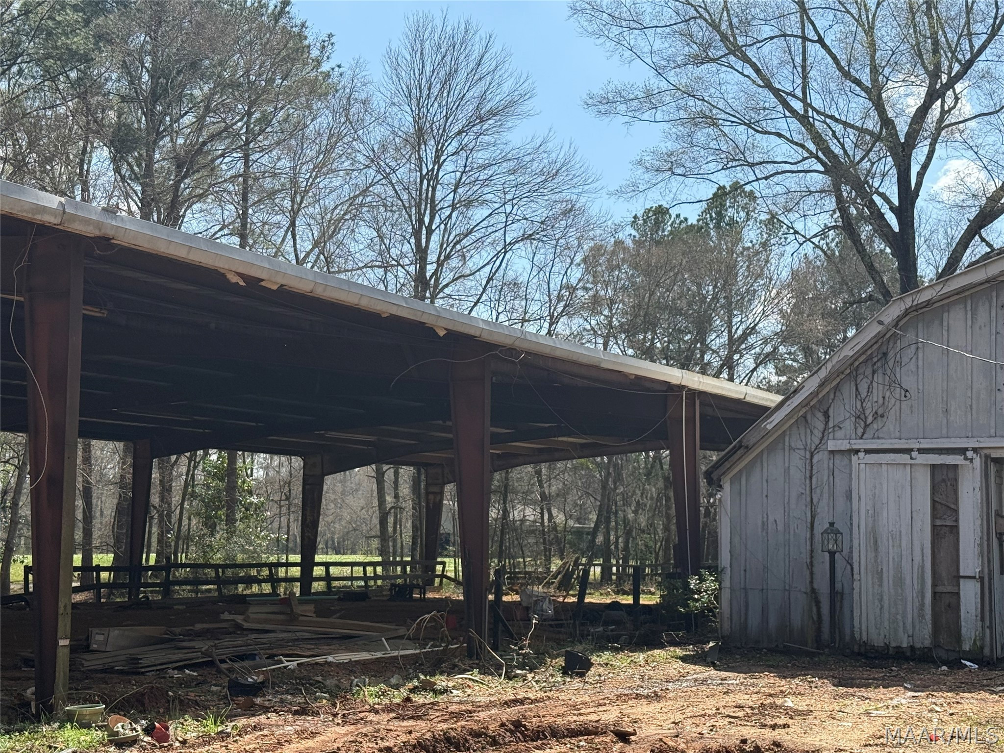 Absolutely beautiful estate lot that has not been available for purchase on the market in over 30 years. One of the last lots available in the Foxwood Neighborhood. Large horse barn with stables, storage and loft. The barn is 2,800 sq ft plus or minus with a metal gambrel roof. Also an open steel arena with steel roof that 8,000 sq ft plus or minus. There is a mix of very large oak trees and pines among all the other variety of trees. Small pond that could be expanded that is spring fed. One of a kind property. There is a row of stables that need repair.