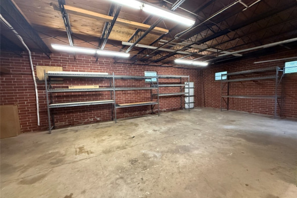 Sturdy and secure Brick Warehouse with office space available for lease. Warehouse has a an 8’x10′ roll up door. Includes two working bathrooms. Good roof with no leaks. Perfect space for contractor storage. Agent has ownership interest in the building.