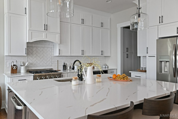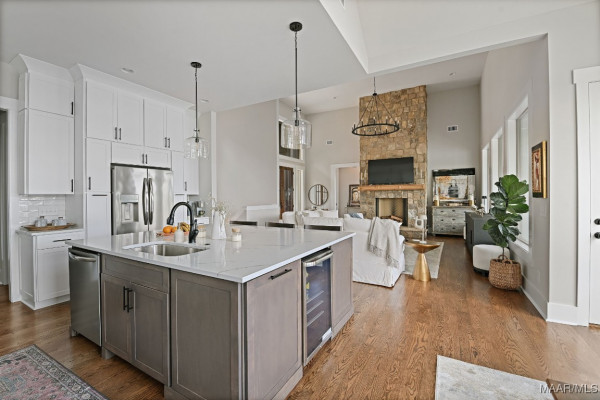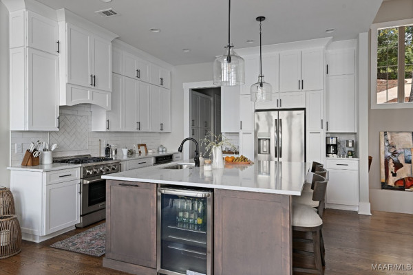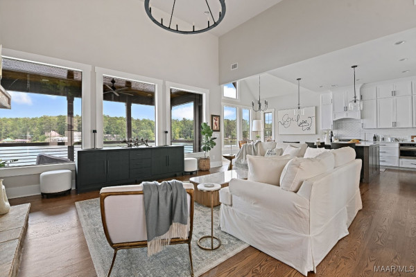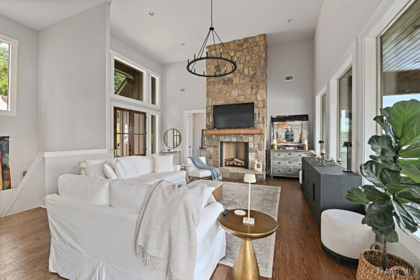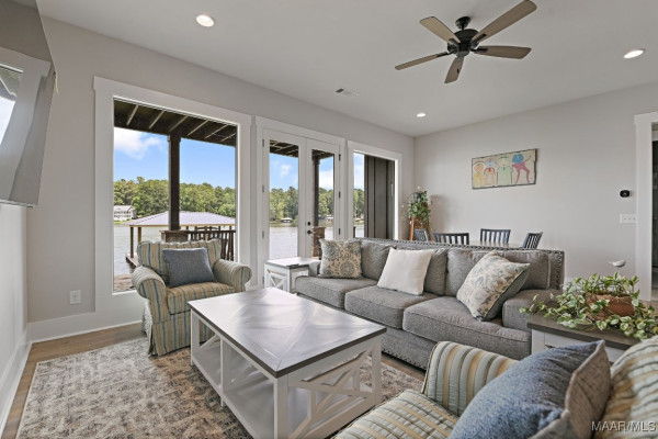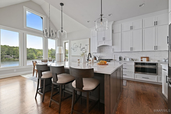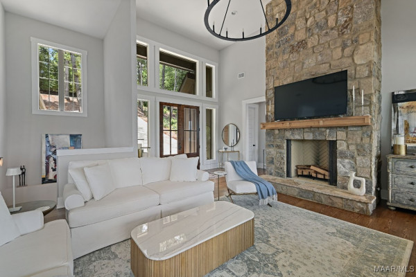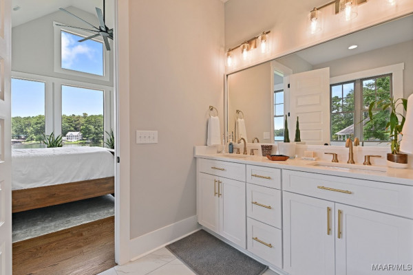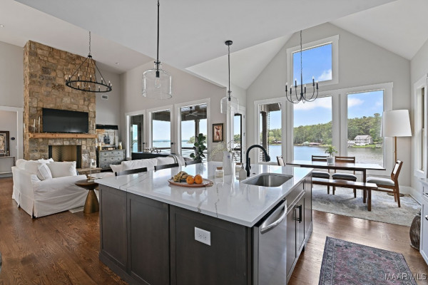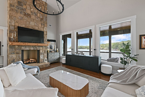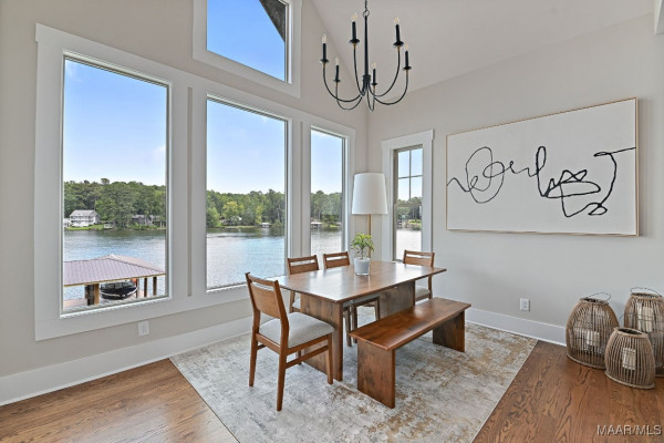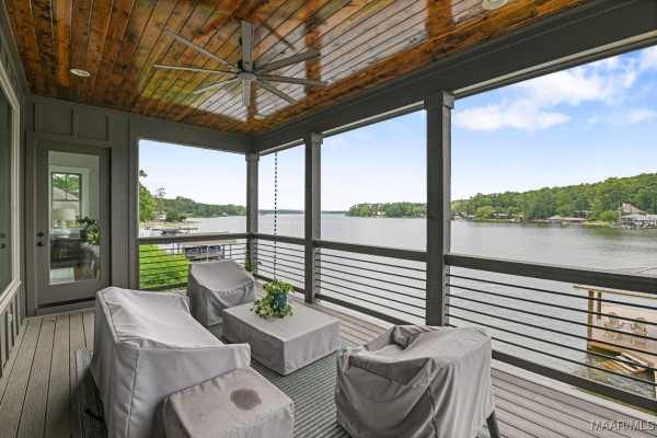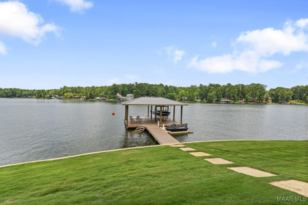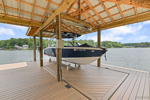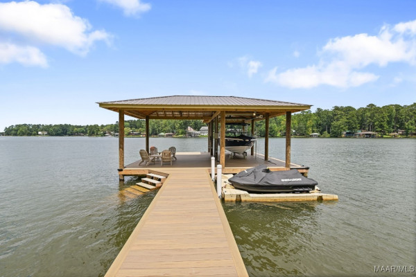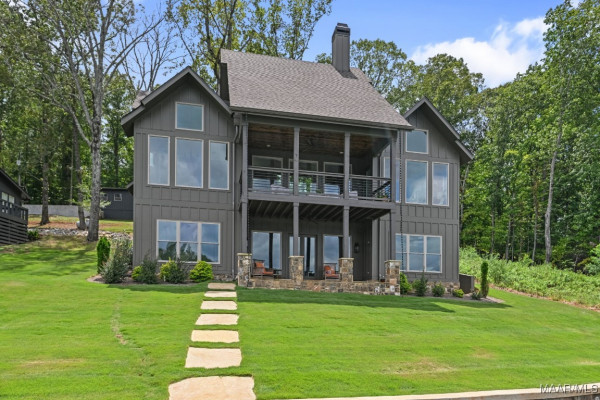LOVELY LAKE MARTIN MASTERPIECE!! This 4 bed, 4.5 bath home with 100 ft of water frontage has some of the most majestic views on the lake, AND it is swimming distance to Chuck’s Marina! From the moment you come through the gorgeous double doors and see the lodge like masonry fireplace and soaring ceilings you know you have entered a special place where you will make memories that will last a lifetime. The kitchen is amazing with LOADS of cabinet and counter space, a large island with a built in beverage fridge, a glorious gas range and a built in microwave. The laundry is in between the kitchen and the hall to the garage. You will also find the upstairs living area is open to the kitchen and breakfast/dining area both of which have access to the 2nd story patio. The Primary bedroom has a spectacular view of the water, an ensuite bath with a soaking tub, separate shower and a HUGE walk in closet. Actually, EVERY bedroom has an ensuite bath. One of the bedrooms has the most adorable bunk beds (4 of them) so there is plenty of room for kids, grandkids, cousins, or anyone else that needs a place to snooze after a long day on the lake. The downstairs features not only spacious bedrooms, but a roomy lounge and kitchenette that opens up to a covered patio where you will enjoy sunsets and sunrises. There is also a handy storage room for all of your water toys, air mattresses or anything else you need to stash away. The best part of the house is outside! The back of the lot is FLAT and from it you will see the boathouse/lift and deck with stairs leading into the sparkling water. There is so much to see and love you simply must come see it to appreciate all it has to offer. Verify any information that is important such as zoned schools, utilities, etc.