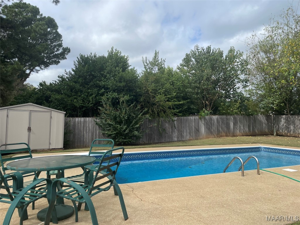 Step outside and enjoy the covered porch, perfect for sipping your morning coffee or relaxing at sunset. The backyard also boasts a refreshing chlorine pool, making it your private oasis for hot summer days. For those who need extra storage or workspace, you’ll appreciate the detached storage shed and workshop.