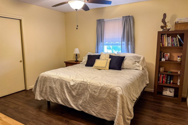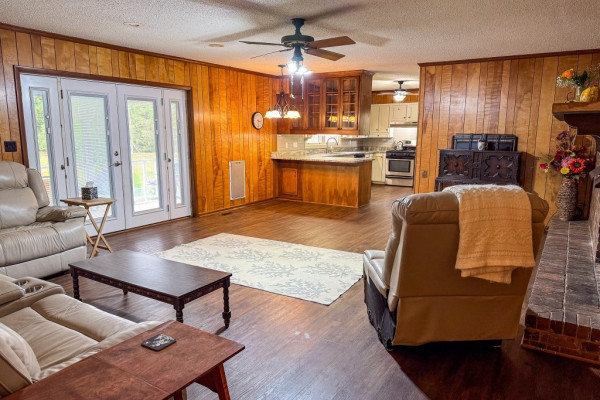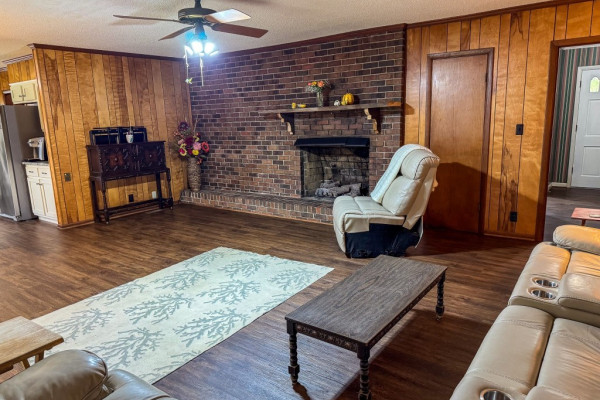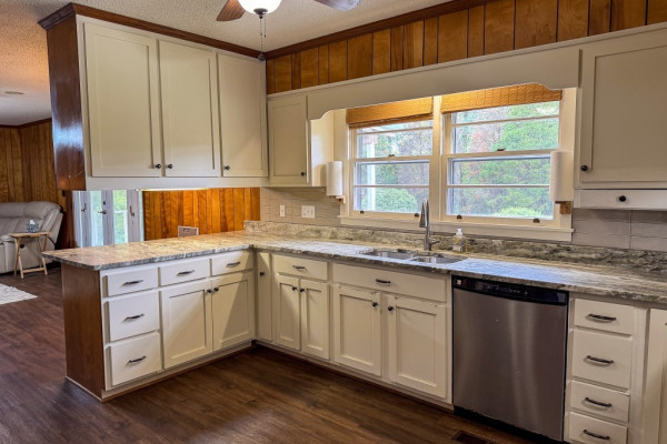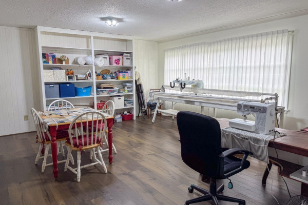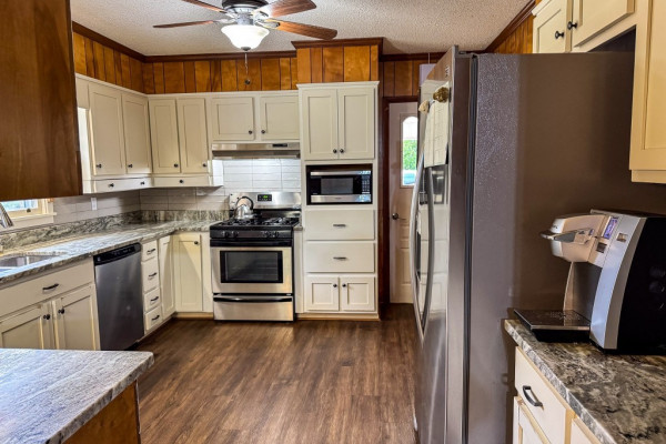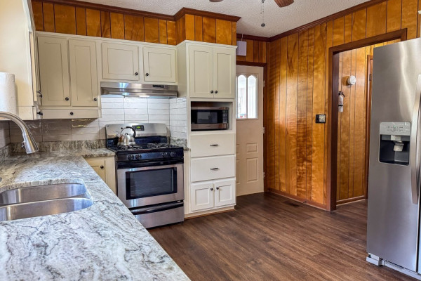 The workshop is truly a MAN CAVE with an attached guest quarters with full bath, Murphy bed, TV, microwave, refrigerator, & massage chair! When it’s finally time to go inside, you’ll enjoy an updated Kitchen with stainless appliances, updated cabinets, beautiful granite countertops, walk-in pantry/Laundry, and breakfast bar.