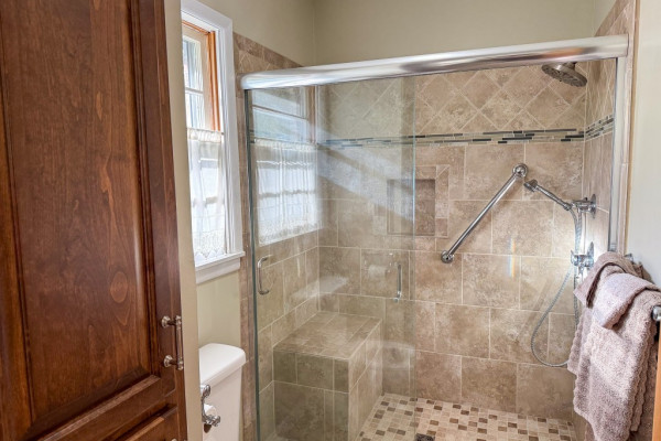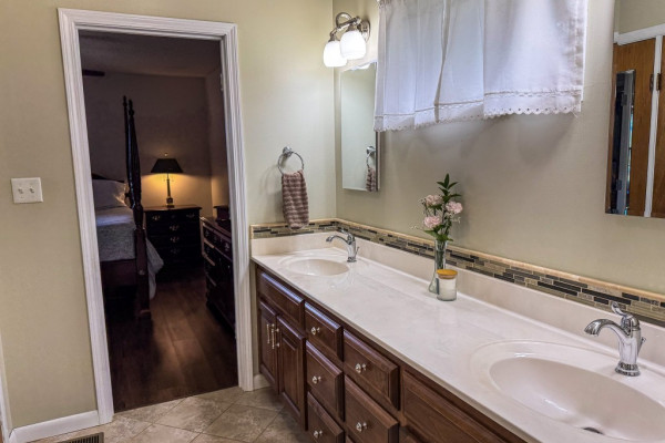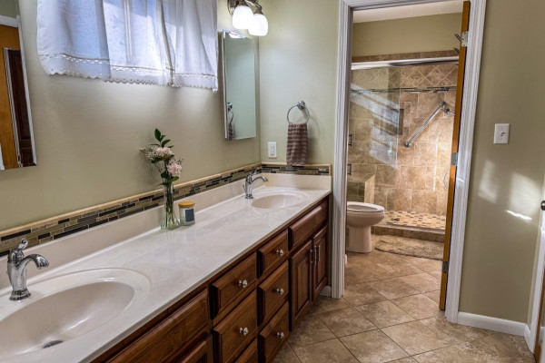 Generous floor plan: Kitchen, Dining, family room with gas log fireplace, and formal living room with handsome mantle. The formal dining room can be used as a 4th Bedroom or Office. The primary suite has a double vanity, beautiful walk-in shower and nice closet space.