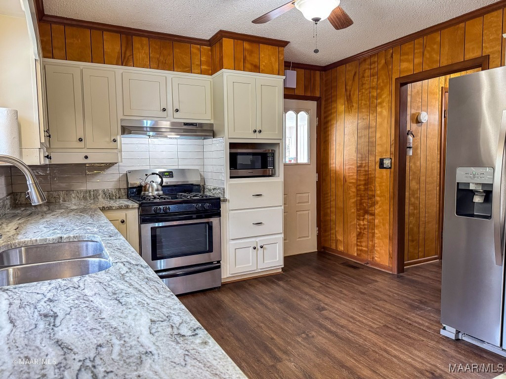 The workshop is truly a MAN CAVE with an attached guest quarters with full bath, Murphy bed, TV, microwave, refrigerator, & massage chair! When it’s finally time to go inside, you’ll enjoy an updated Kitchen with stainless appliances, updated cabinets, beautiful granite countertops, walk-in pantry/Laundry, and breakfast bar.