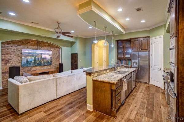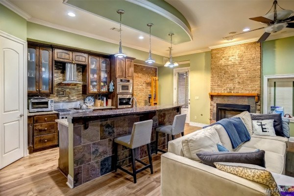 The chef in you will love the kitchen’s granite countertops and sleek stainless steel appliances, while the bonus room’s custom cabinets, wine fridge, and fireplace make it ideal for entertaining. The master bedroom is your personal retreat, complete with a spacious walk-in closet, large tub, and walk in shower!