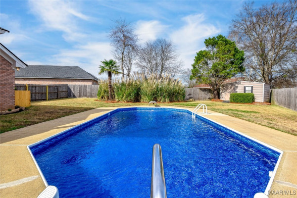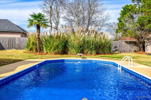 Recent improvements include a new roof (2019), tankless water heater (2020), HVAC system (2022), remodeled main bath, whole-house water filtration system (2023), all new appliances (2024), new garage door (2025), new pool liner (2025), granite countertops (2025), all new windows (Dec. 2025), and fresh interior paint throughout (2025).