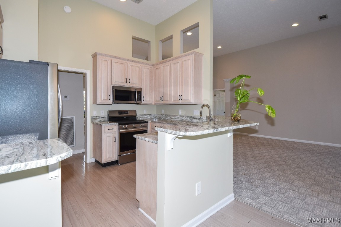 Inside, the home offers a separate dining room and a spacious great room with soaring ceilings and a gas fireplace. The bright, open kitchen includes a breakfast/serving bar, and the breakfast room overlooks the gorgeous pool and backyard. Guest bedrooms are generously sized, and the split floor plan provides added privacy for the primary suite.