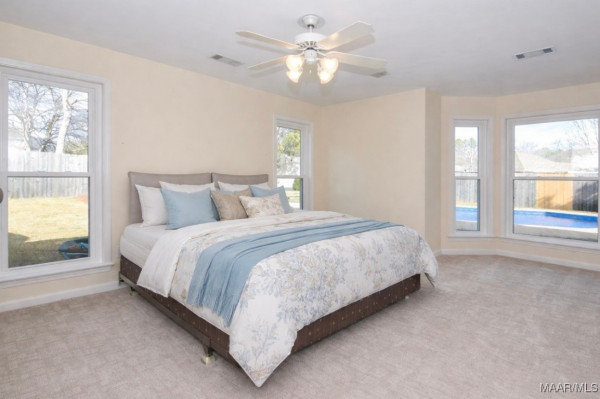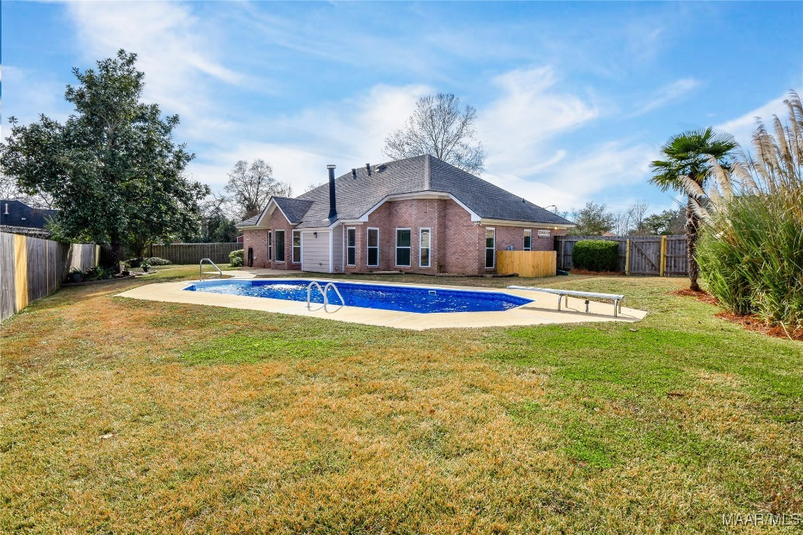 Recent improvements include a new roof (2019), tankless water heater (2020), HVAC system (2022), remodeled main bath, whole-house water filtration system (2023), all new appliances (2024), new garage door (2025), new pool liner (2025), granite countertops (2025), all new windows (Dec. 2025), and fresh interior paint throughout (2025).
