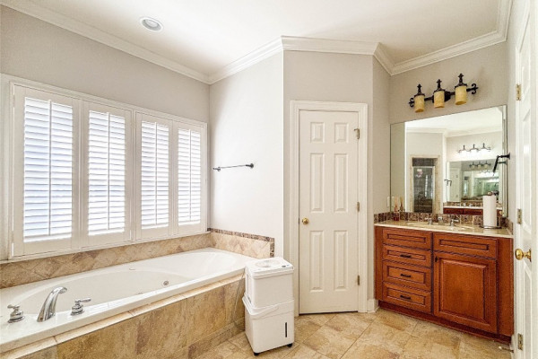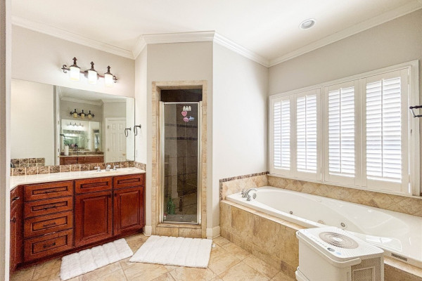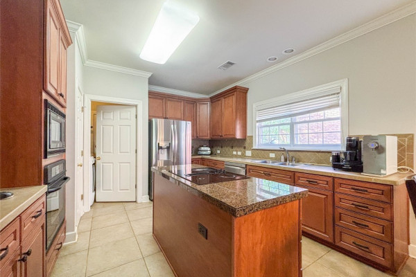 The kitchen is a chef’s dream—tastefully decorated with elegant tilework, a stacked oven and microwave, and thoughtful details throughout. Retreat to the spacious master suite, large enough to accommodate all your bedroom furnishings comfortably. The luxurious master bath features a jetted tub, separate shower, and double vanity for your convenience.