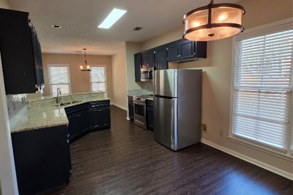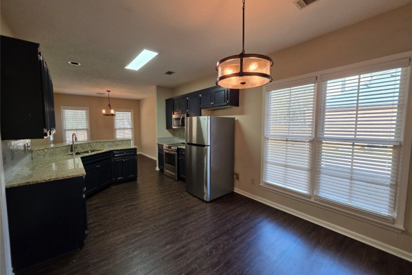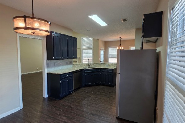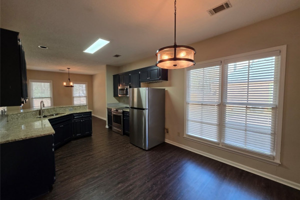 Welcome to 2230 Kingsbury Drive! This beautiful spacious home is located in an established low traffic neighborhood in a centralized location. The open concept floorplan makes for lots of open spaces and easy living. There are 4 bedrooms with cushy carpet with vinyl hardwood flooring throughout the rest of the home. Large windows add lots of dram to the vaulted ceiling in the living room and help make the space bright and comfortable. The kitchen features a breakfast area, stainless appliances, and granite countertops. The master has vaulted ceilings, a separate tub and shower, and a large walk in closet. There are three additional bedrooms, and a privacy fenced back yard to keep children and pets safe.