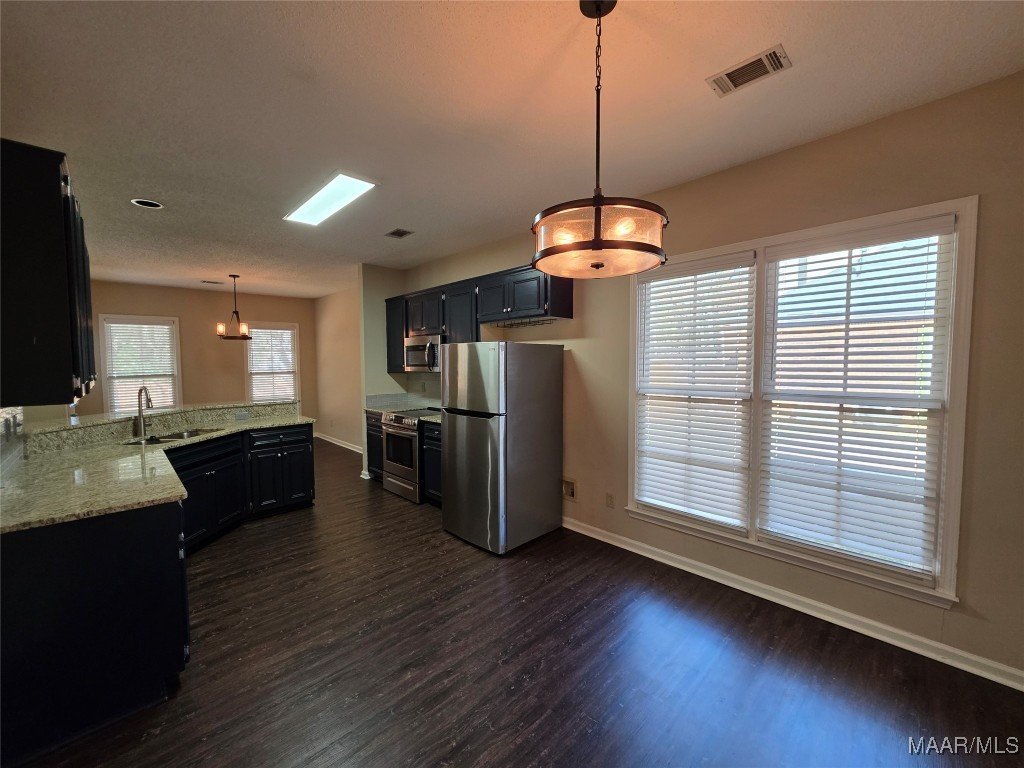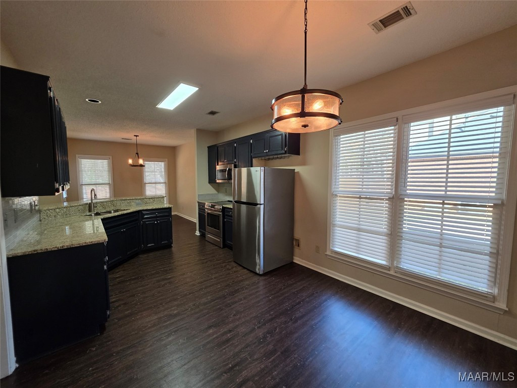 Welcome to 2230 Kingsbury Drive! This beautiful spacious home is located in an established low traffic neighborhood in a centralized location. The open concept floorplan makes for lots of open spaces and easy living. There are 4 bedrooms with cushy carpet with vinyl hardwood flooring throughout the rest of the home. Large windows add lots of dram to the vaulted ceiling in the living room and help make the space bright and comfortable. The kitchen features a breakfast area, stainless appliances, and granite countertops. The master has vaulted ceilings, a separate tub and shower, and a large walk in closet. There are three additional bedrooms, and a privacy fenced back yard to keep children and pets safe.