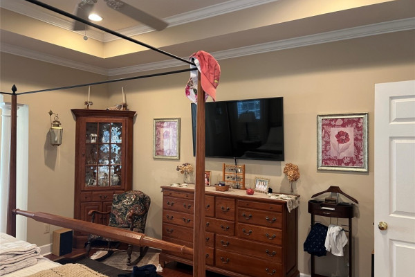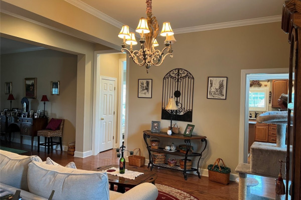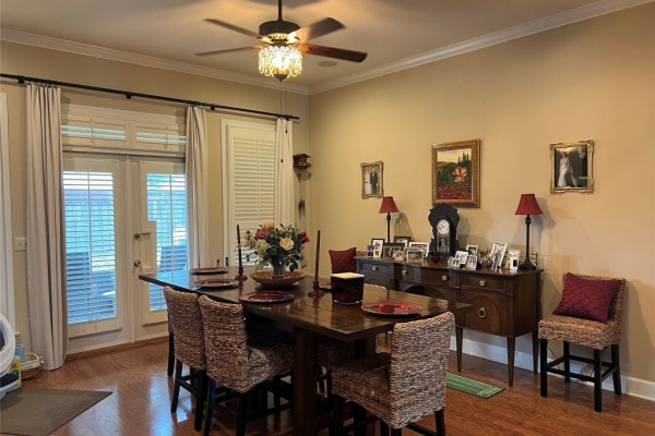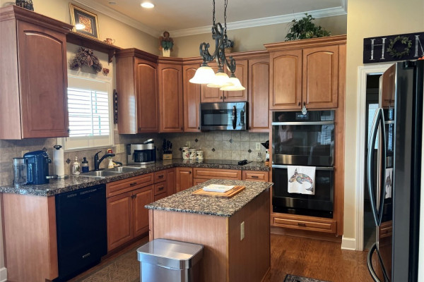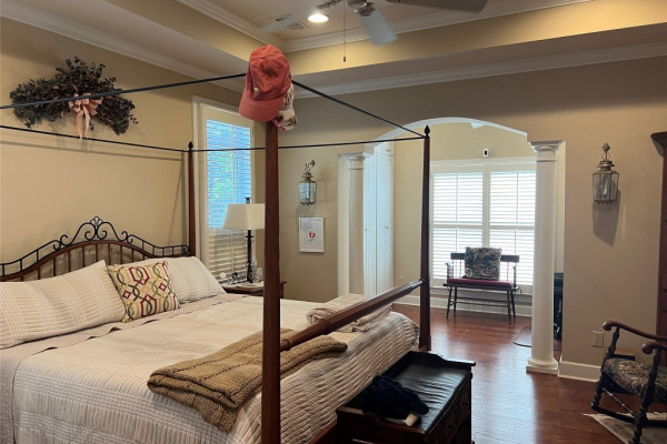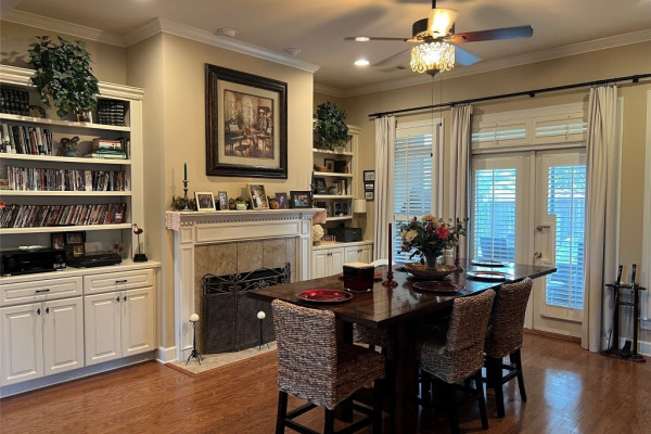 This wonderfully maintained home located on a corner lot in Wyndridge offers four bedrooms, a bonus room, an office, 3 full baths, two half baths, a formal dining room, a spacious great room, a kitchen with a work island, updated appliances, a breakfast room, a gathering room and a master bedroom with a sitting room that offers custom built cabinets for extra storage and closet space. The sellers have recently replaced the roof, updated both water heaters (one tankless and one traditional tank), had the interior painted, replaced the garage overhead door with an insulated door, widened the driveway adding stamped concrete at the entrance, screened the back porch, installed electronic locks for the front and interior garage door, added brick tile to the front and back porches and replaced several windows. Other value added features include high ceilings, crown molding, wood flooring throughout the downstairs living area, berber carpet upstairs, custom built bookshelves in the great room and elegant lighting throughout the home. Did I mention all the storage?…this home offers walk in closets, window seats with storage in the bedrooms upstairs. Custom cabinets in the office, built in bookshelves in the greatroom and theater room, custom built in cabinets in the master bedroom and lots of cabinets in the utility room. Outside you are sure to enjoy the large screened back porch overlooking a nicely landscaped and fenced back yard. The large corner lot is located next to the gated back entrance to Wyndridge. This gate is always locked. Call me or your favorite realtor to view this beautiful, move in ready, home today!
