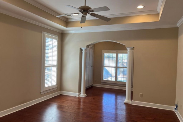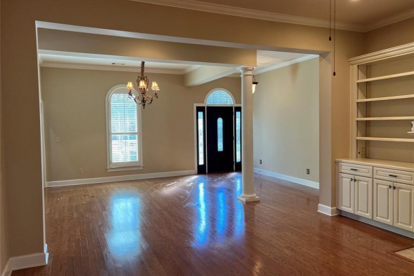Wonderfully maintained and move-in ready home situated on a desirable corner lot in Wyndridge. This spacious residence offers 4 bedrooms, a bonus room, a private office, 3 full baths, and 2 half baths, providing exceptional flexibility for today’s lifestyle. The main level features a formal dining room, a spacious great room with custom built-in bookshelves, and beautiful wood flooring throughout the living areas. The well-appointed kitchen includes a work island, updated appliances, abundant cabinetry, and a breakfast room, along with an additional gathering room perfect for entertaining. The primary suite is a true retreat, featuring a sitting area with custom built-in cabinets that provide exceptional storage and closet space. Upstairs you’ll find generously sized bedrooms with walk-in closets and window seats with storage, Berber carpeting, and a bonus room ideal for a theater, playroom, or additional living space.