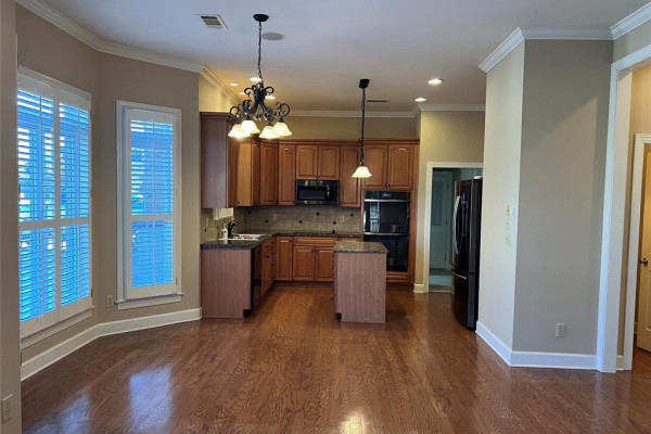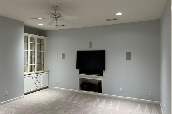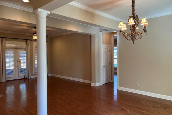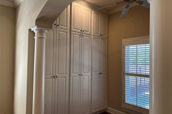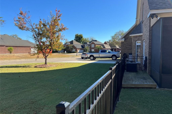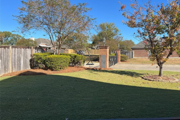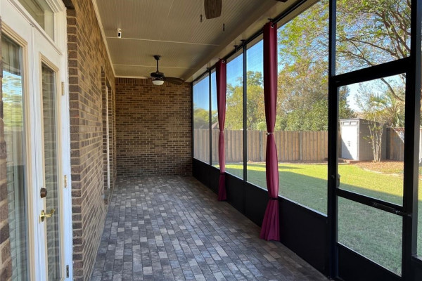 Recent updates include a new roof, updated water heaters (one tankless, one traditional), fresh interior paint, insulated garage door, expanded driveway with stamped concrete entry, screened back porch, electronic front and garage entry locks, brick tile on front and back porches, and replacement windows. Additional features include high ceilings, crown molding, elegant lighting, custom office cabinetry, built-ins in the great room and bonus/theater room, and abundant storage throughout, including a utility room with extensive cabinetry. Outdoor living is enhanced by a large screened back porch overlooking nicely landscaped, fenced backyard. The home is located on a large corner lot adjacent to the gated rear entrance.