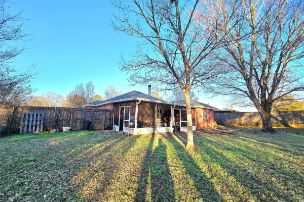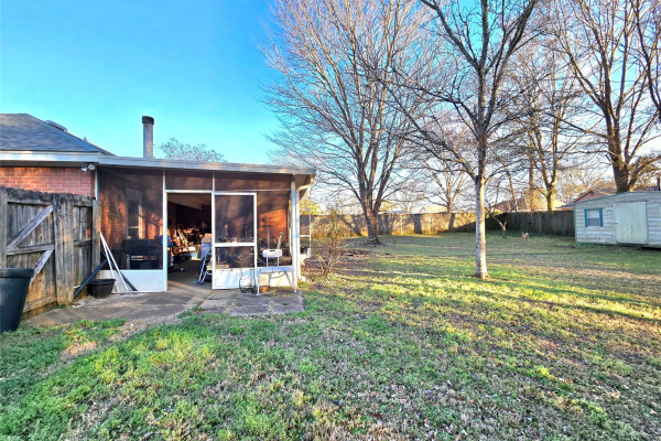 Step outside to a screened-in back porch overlooking a privacy-fenced backyard, complete with a detached storage shed.