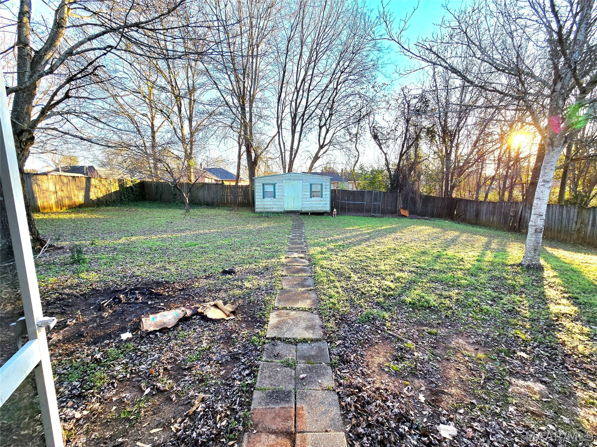 Step outside to a screened-in back porch overlooking a privacy-fenced backyard, complete with a detached storage shed.