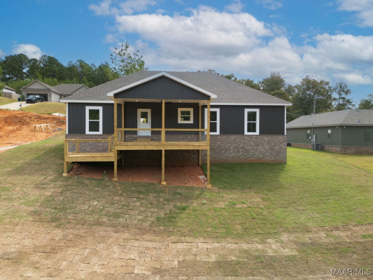 Welcome to your brand-new dream home in the highly sought-after Redland community of Wetumpka! This beautiful 3-bedroom, 2-bath home combines modern craftsmanship with Southern charm, offering comfort, style, and thoughtful details throughout. Step inside to a spacious open-concept living area featuring tongue-and-groove ceilings that add warmth and character to the kitchen and great room. The kitchen is a showstopper with granite countertops throughout, custom cabinetry, and a large island perfect for entertaining. The private primary suite is your retreat — complete with a luxurious tile shower, large soaking tub, and dual granite vanities – pick your own appliances with the $3,000 builder allowance! Two additional bedrooms provide plenty of space for family, guests, or a home office. Step outside and relax on the huge covered back porch with a dedicated grilling area, perfect for weekend cookouts or quiet evenings. The two-car garage offers convenience and storage, while the home’s craftsmanship and quality finishes make it truly stand out. Located in the desirable Redland area—close to Redland Elementary, parks, and just minutes from downtown Wetumpka—this home offers the perfect balance of peaceful living and modern convenience. Don’t miss your chance to own this beautiful new home—schedule your showing today!