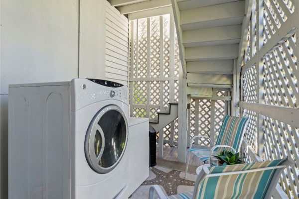 The two upper units feature impressive 11-foot ceilings, abundant natural light, and spacious layouts. All kitchens have been modernized with butcher block countertops and updated appliances. Bathrooms were fully remodeled with custom showers and luxury fixtures. Each unit offers streaming-enabled TVs, dedicated work areas with high-speed internet, and in-unit washers and dryers.