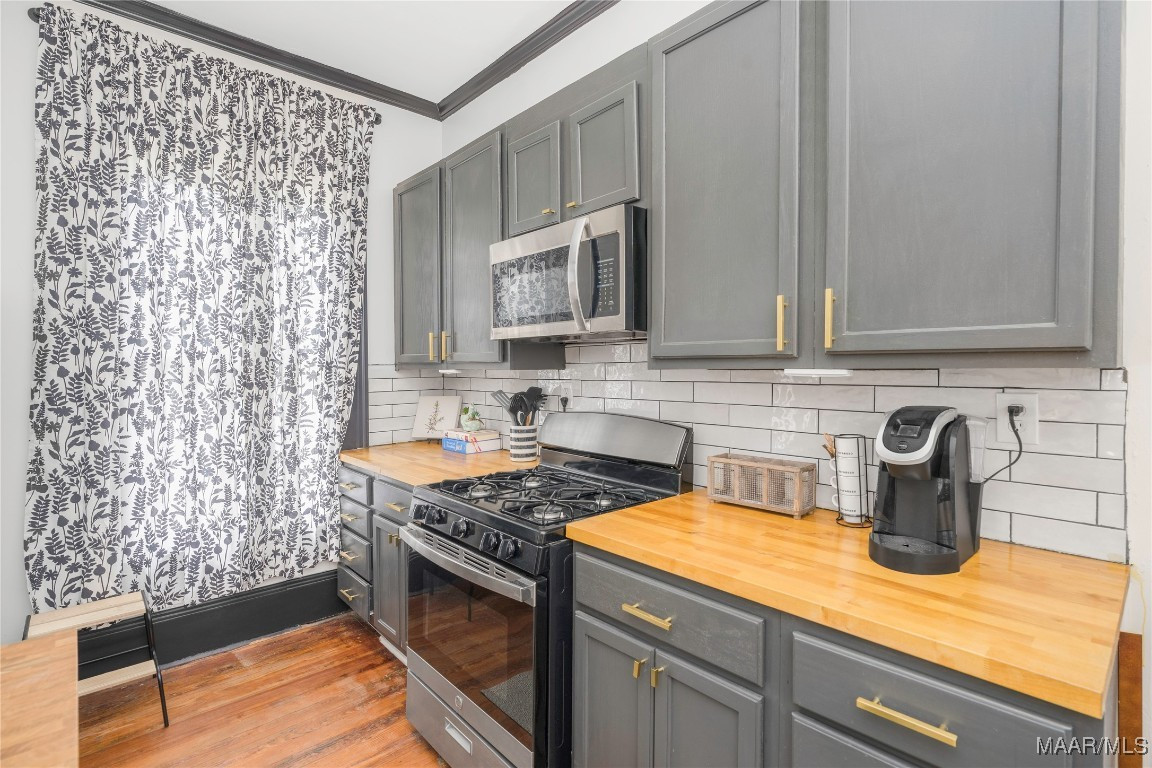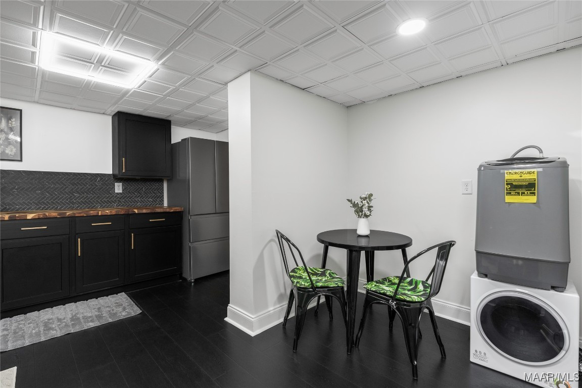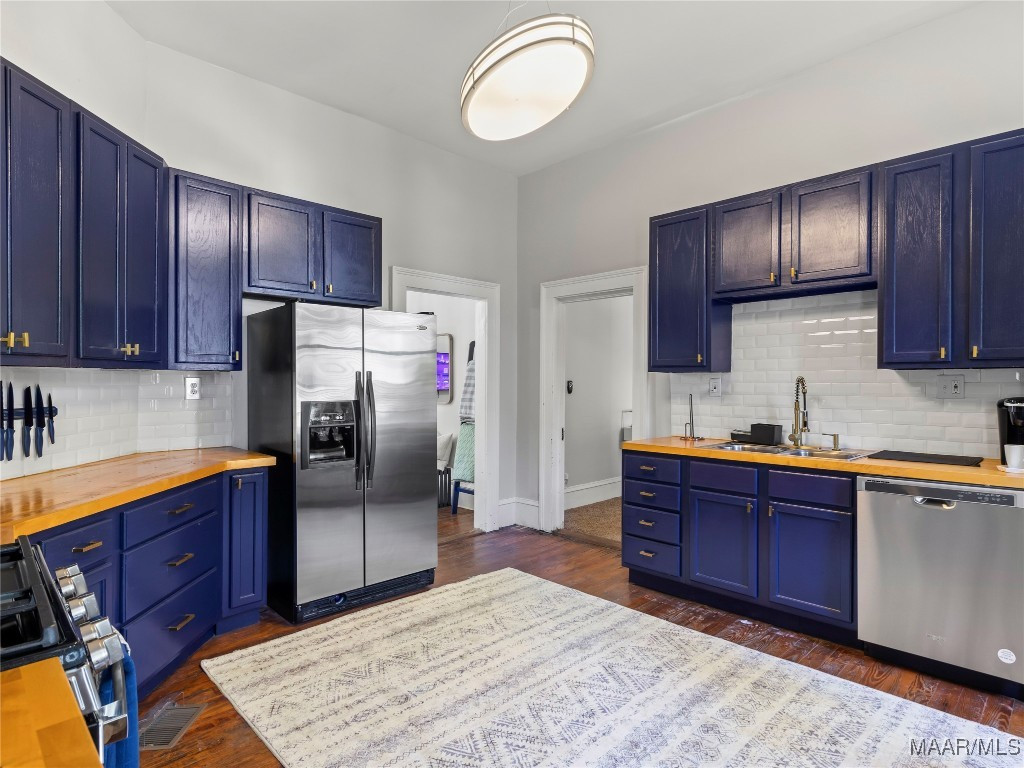 The two upper units feature impressive 11-foot ceilings, abundant natural light, and spacious layouts. All kitchens have been modernized with butcher block countertops and updated appliances. Bathrooms were fully remodeled with custom showers and luxury fixtures. Each unit offers streaming-enabled TVs, dedicated work areas with high-speed internet, and in-unit washers and dryers.