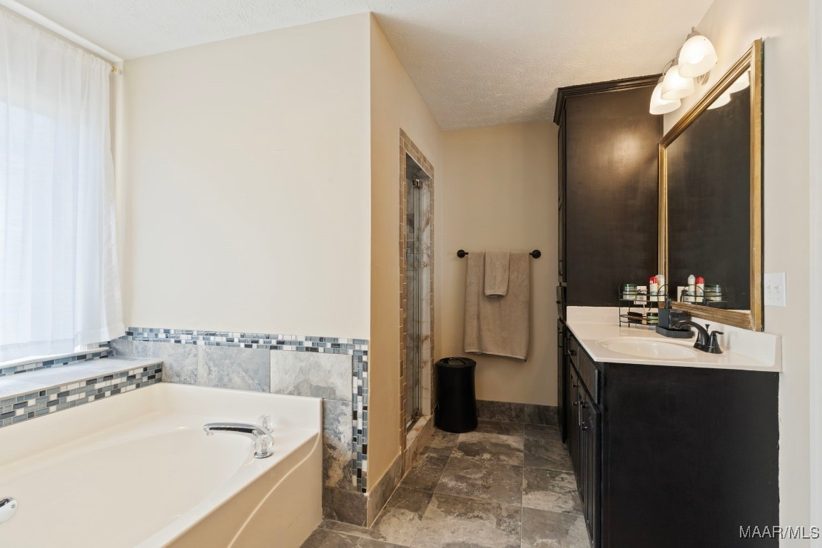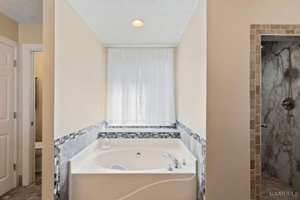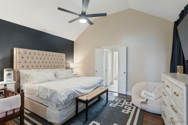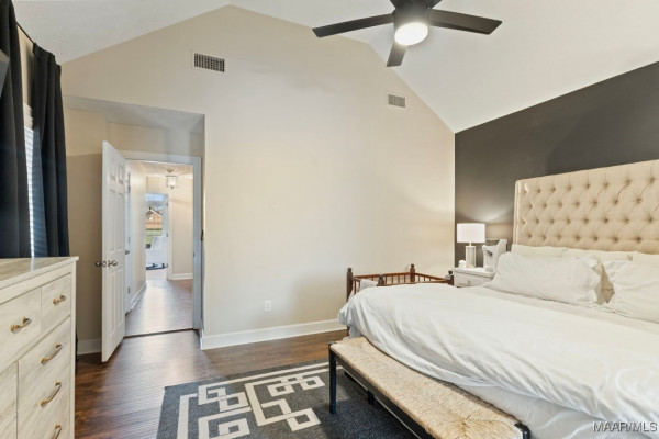 The large primary suite is a true retreat, complete with vaulted ceilings, his and hers walk-in closets, and private access to the screened-in back porch, perfect for morning coffee or winding down in the evenings. The updated ensuite bath features dual vanities, a soaking tub, and a beautifully renovated walk-in shower with built-in bench seating and dual shower heads.