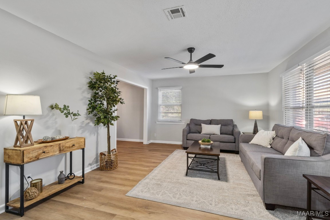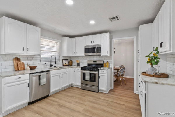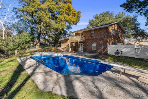 Spacious, newly renovated tri-level home located in the Scenic Hills neighborhood. This move-in ready property features new luxury vinyl plank flooring throughout, fresh interior paint, and new fixtures. Be welcomed by a spacious living area with lots of natural light that connects to a designated dining area. The kitchen has newly painted kitchen cabinets and new granite countertops, along with stainless steel appliances. The lower level or “primary suite” offers a spacious bedroom, fully remodeled bathroom and sitting area, perfect for an in-home office or sitting area for the primary suite. It also offers a large den area and storage room/laundry room. The upper level features a full bath that has been updated and four large bedrooms, one with access to a new deck overlooking the sparkling in-ground swimming pool. Enjoy outdoor living in the private backyard situated on a large lot, ideal for entertaining, swimming, and relaxing. Conveniently located near Cooter’s Pond with easy access to Prattville and Montgomery.