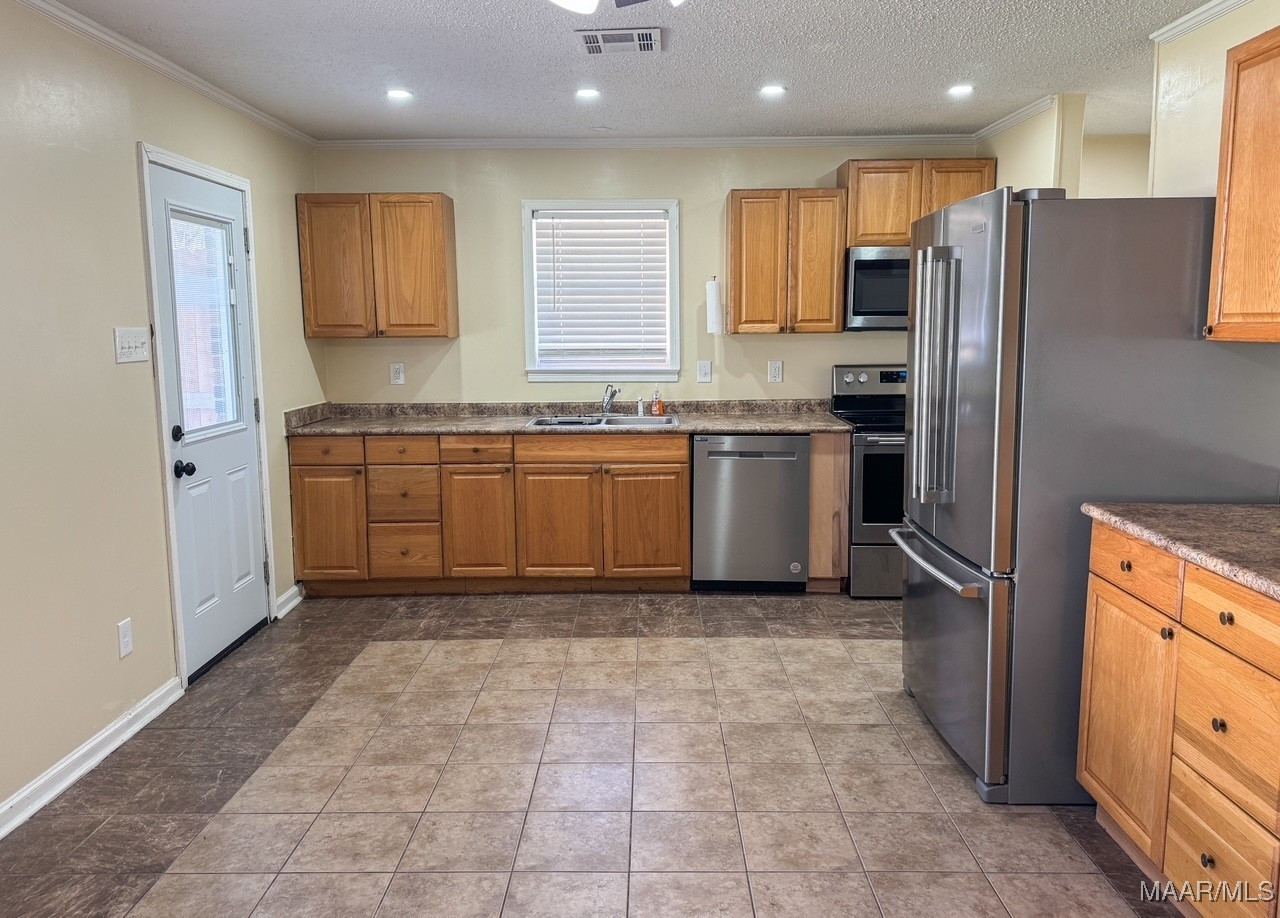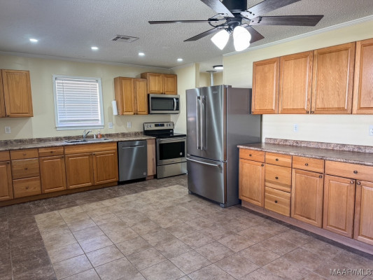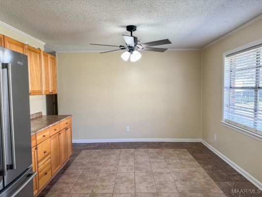 Move-in ready 4-bedroom, 2-bath home located in Country Club Estates in Prattville. Upon arrival, the front porch welcomes you into the living room, filled with natural light and featuring laminate flooring. The spacious eat-in kitchen offers stainless steel appliances (approximately two years old), ample cabinetry, and a large dining area with tile flooring. Additional pantry space is located just off the kitchen. The laundry room is conveniently located inside the home and provides access to enter the home from the parking area.