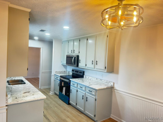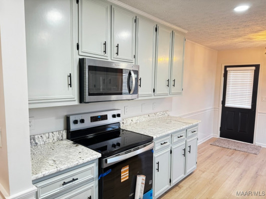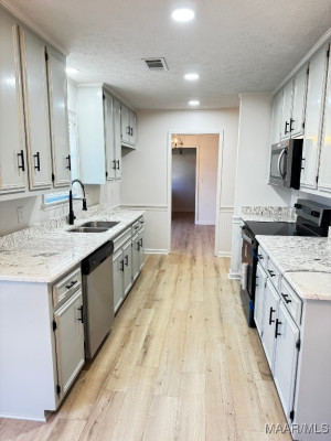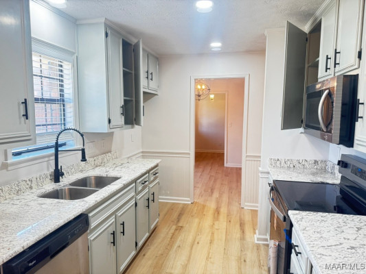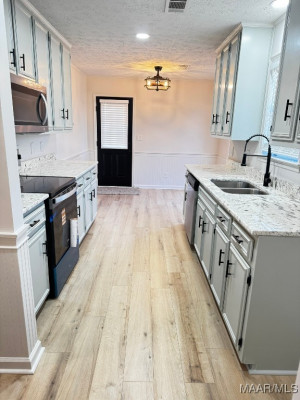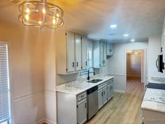 Must See to Appreciate this R E N O V A T E D 3 bedroom/2 bathroom home in Montgomery, AL! Home has foyer, great room with fireplace, Eat in Kitchen, Separate Dining Room, Screened In Patio for entertaining or watching TV and a nice backyard that offers additional parking under a 20 X 20 metal carport This home invites you to come on in and set up House with NO FUSS. NEW Tongue and Groove Accent Wood added to Tray ceiling in great room, dining room, and main bedroom closet ceiling, NEW vinyl plank flooring throughout! NEW 2″ faux blinds, NEW light fixtures inside and outside, NEW countertops in bathrooms and kitchen, NEW kitchen sink with NEW faucet, NEW mirrors in both bathrooms, NEW electric range and microwave, NEW screened in Patio with 2 NEW screen doors, NEW interior and exterior paint, NEW doors installed on both ends of metal storage unit for security. Home has surveillance cameras already installed for added home security. Contact your favorite REALTOR to see this GEM in Brighton Estates.