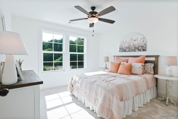 Welcome to The Elise B Floor Plan. This home is perfect for families seeking both functionality and style. On the main floor, the home features an open-concept great room, kitchen, and dining area, ideal for entertaining. The kitchen includes a spacious island and pantry, creating an efficient space for meal prep. A convenient laundry room and powder room are also located on the first floor, adding to the home’s practicality. The owner’s suite is located on the first floor, offering a private retreat with a large walk-in closet and a luxurious en-suite bathroom. Upstairs, you’ll find three additional bedrooms and a full bathroom, with the option of a two-sink setup for added convenience. A loft area provides extra space for relaxation or study. A covered front porch and a 2-car garage complete the floor plan, offering plenty of storage and curb appeal. With 4 bedrooms, 2.5 bathrooms, and a well-designed layout, the Elise B is an excellent choice for those seeking a home with both space and style. The community of Everley is nested into the growing city of Pike Road. With an easy commute to the cities of Montgomery and Auburn, this scenic community is surrounded by serenity and is a short distance from top-ranked Pike Road Elementary School. Current amenities include pickle ball courts, disc golf bins in community green space, and sidewalks connecting to the Pike Road Road Nature Trail.