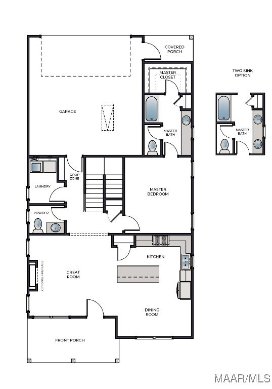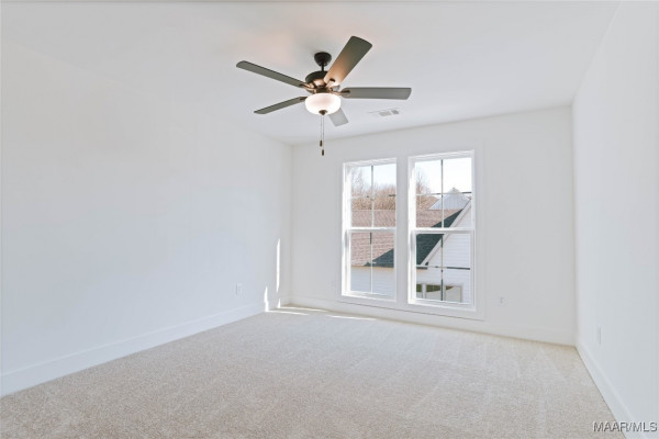 Welcome to The Elise B Floor Plan. This home is perfect for families seeking both functionality and style. On the main floor, the home features an open-concept great room, kitchen, and dining area, ideal for entertaining. The kitchen includes a spacious island and pantry, creating an efficient space for meal prep. A convenient laundry room and powder room are also located on the first floor, adding to the home’s practicality. The owner’s suite is located on the first floor, offering a private retreat with a large walk-in closet and a luxurious en-suite bathroom. Upstairs, you’ll find three additional bedrooms and a full bathroom, with the option of a two-sink setup for added convenience. A loft area provides extra space for relaxation or study. A covered front porch and a 2-car garage complete the floor plan, offering plenty of storage and curb appeal. With 4 bedrooms, 2.5 bathrooms, and a well-designed layout, the Elise B is an excellent choice for those seeking a home with both space and style. The community of Everley is nested into the growing city of Pike Road. With an easy commute to the cities of Montgomery and Auburn, this scenic community is surrounded by serenity and is a short distance from top-ranked Pike Road Elementary School. Current amenities include pickle ball courts, disc golf bins in community green space, and sidewalks connecting to the Pike Road Road Nature Trail.