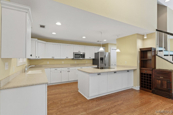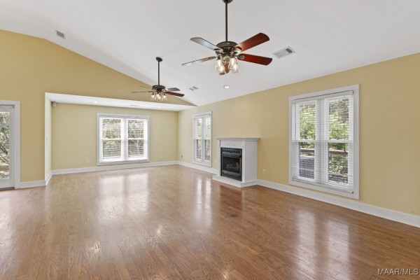 The spacious family room welcomes you with gleaming hardwood floors, electric ventless gas log fireplace and soaring ceilings, flowing seamlessly into a stunning kitchen featuring full appliance package, large breakfast bar, smooth surface countertops, lots of upper and lower cabinets and adjacent to dining area—perfect for entertaining. The primary suite is conveniently located on the main floor, offering river views and a spa-like luxury bath with double smooth surface vanity, soaking tub, separate shower and huge closet. Upstairs, you’ll find two additional bedrooms that offers lots of space and share a hall bathroom.