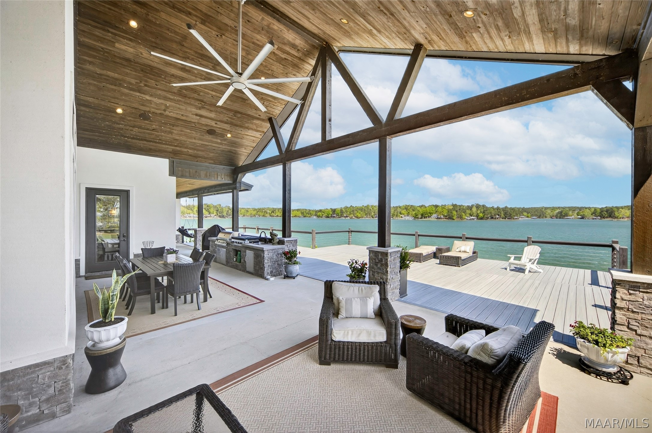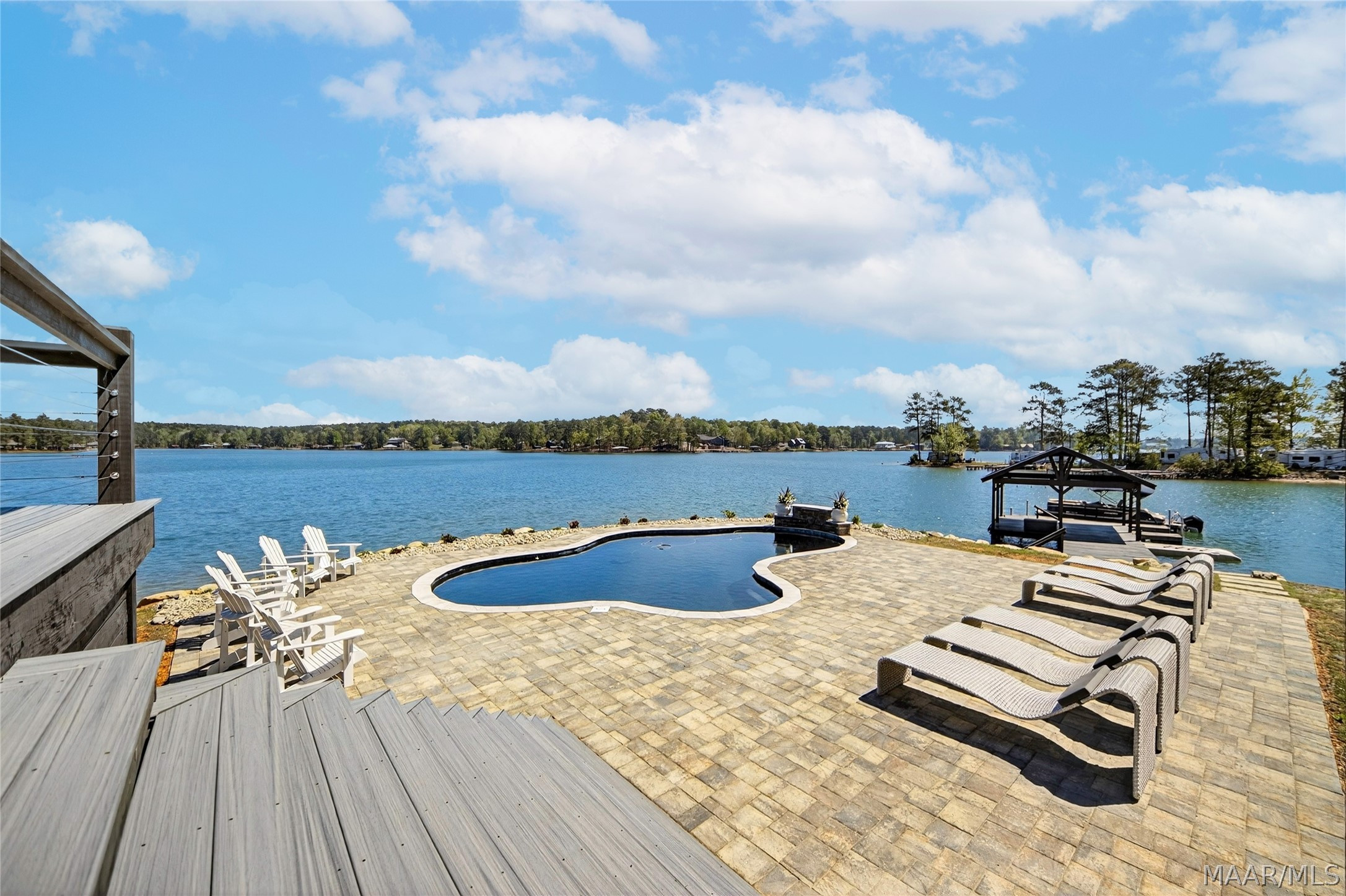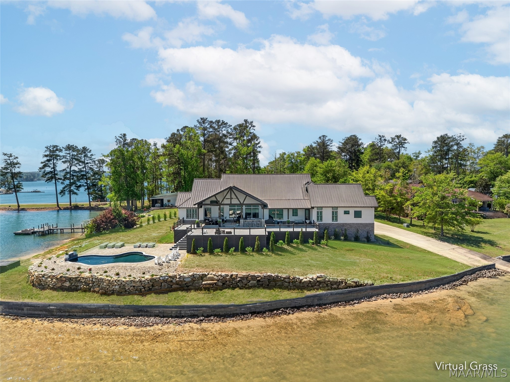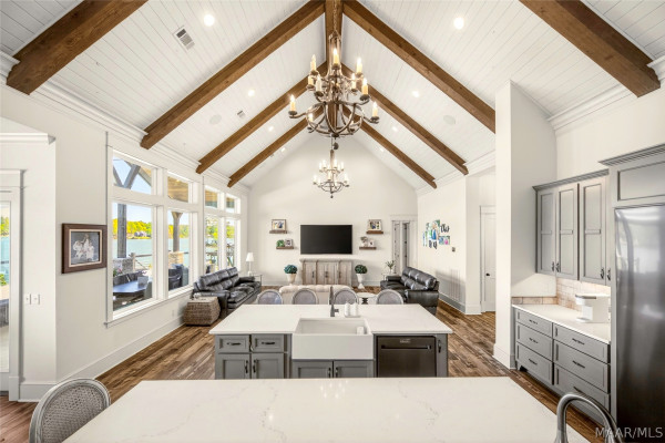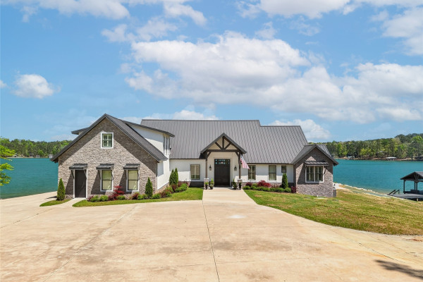 Welcome to luxury lake living at its finest! Extraordinary 6BR/4.5BA waterfront estate on Lake Martin offering ~4,800 sq ft of refined living on 1.34± acres with 357± ft of pristine shoreline and breathtaking panoramic views. Designed with sophistication and intention, this residence showcases an open-concept layout anchored by a chef’s kitchen featuring premium appliances, custom cabinetry, expansive surfaces, and a well-appointed butler’s pantry—ideal for elevated entertaining. The main level presents a serene primary suite with heated bath floors, three guest bedrooms, and 2.5 baths, including a convenient deck-access half bath. Additional spaces include a private office, storm room, and versatile recreation room. Upstairs offers two bedrooms, a spacious living area, full bath, and laundry—perfect for hosting guests in comfort and privacy. Seamless indoor-outdoor living unfolds across the expansive TREX deck, complemented by a private boat ramp and a resort-caliber setting featuring a Gunnite pool and professionally curated landscaping. Enjoy an enhanced living experience with whole-home surround sound extending throughout the interior and porches. Additional highlights include a 4-car garage, spray foam insulation, and low-maintenance construction—delivering the ultimate blend of luxury, comfort, and lakefront lifestyle.
