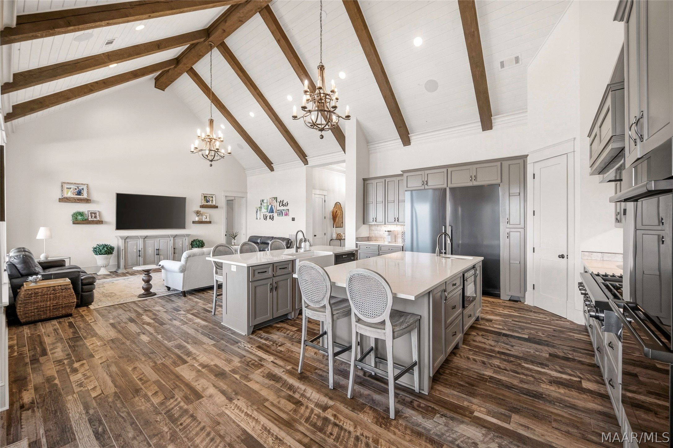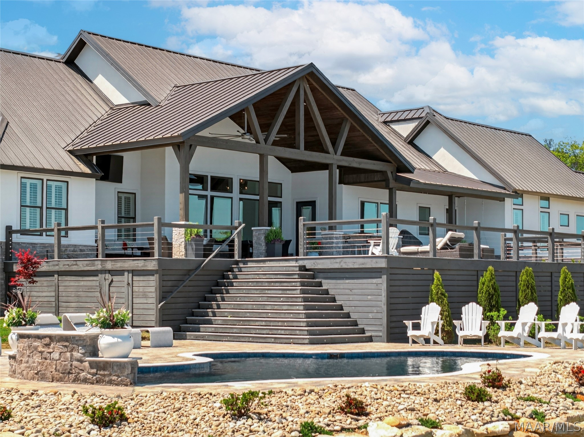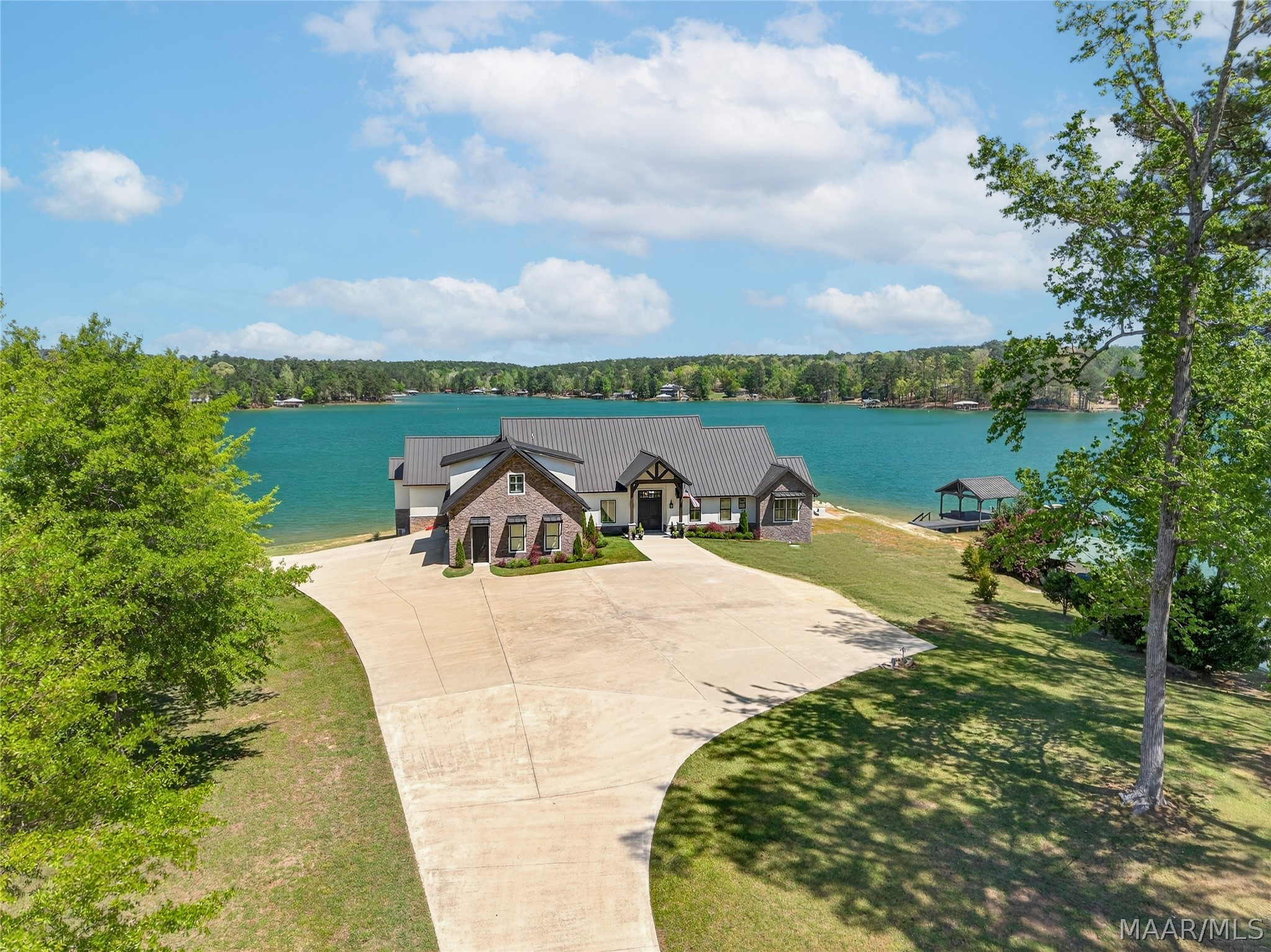 Welcome to luxury lake living at its finest! Extraordinary 6BR/4.5BA waterfront estate on Lake Martin offering ~4,800 sq ft of refined living on 1.34± acres with 357± ft of pristine shoreline and breathtaking panoramic views. Designed with sophistication and intention, this residence showcases an open-concept layout anchored by a chef’s kitchen featuring premium appliances, custom cabinetry, expansive surfaces, and a well-appointed butler’s pantry—ideal for elevated entertaining. The main level presents a serene primary suite with heated bath floors, three guest bedrooms, and 2.5 baths, including a convenient deck-access half bath. Additional spaces include a private office, storm room, and versatile recreation room. Upstairs offers two bedrooms, a spacious living area, full bath, and laundry—perfect for hosting guests in comfort and privacy. Seamless indoor-outdoor living unfolds across the expansive TREX deck, complemented by a private boat ramp and a resort-caliber setting featuring a Gunnite pool and professionally curated landscaping. Enjoy an enhanced living experience with whole-home surround sound extending throughout the interior and porches. Additional highlights include a 4-car garage, spray foam insulation, and low-maintenance construction—delivering the ultimate blend of luxury, comfort, and lakefront lifestyle.