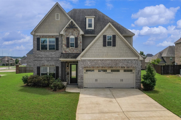 Welcome home to the desirable Glennbrooke community in Prattville! When you call Glennbooke home you will get to enjoy resort-style amenities: 3 pools, splash pad, 2 playgrounds, walking trail, green space, and a pond. Conveniently located to shopping, dining, entertaining, and top rated schools! This beautiful corner-lot home offers 5 bedrooms and 3.5 bathrooms with plenty of space for family and entertaining guest. Inside, you’ll find a formal dining room, a spacious living room, a kitchen boasting abundant cabinets and counter space and convenient half bath for guests to use. The large downstairs master suite features a luxurious bathroom with dual vanities, a garden tub, oversized walk-in shower, private water closet, and extra large walk in closet. Upstairs, you’ll find 4 generously sized guest bedrooms, 2 full bathrooms, and a large laundry room for added convenience. Two car garage and a covered back patio for entertaining! Schedule an appointment today!