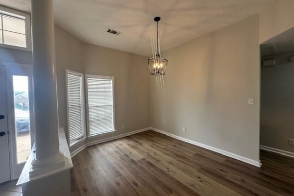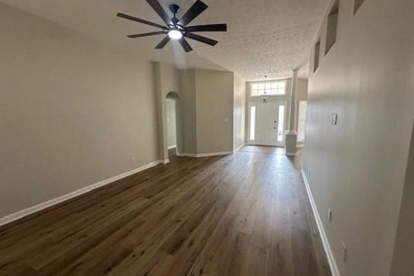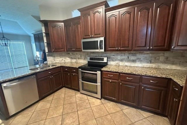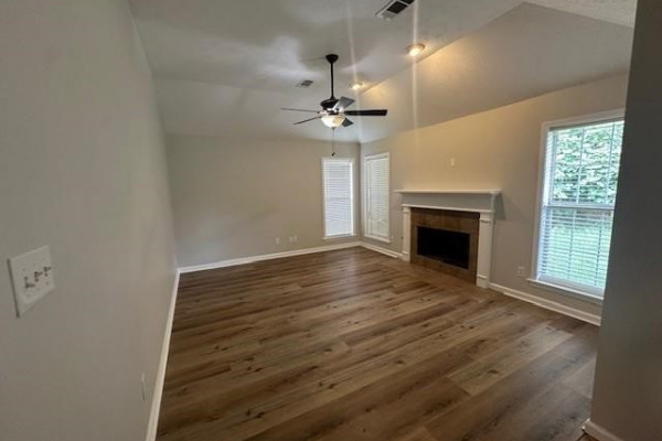 Spacious 4-Bedroom Home in Highland Ridge – Modern Updates & Ideal Layout! Welcome to updated 4-bedroom, 2-bath home located in the highly desirable Highland Ridge community. Featuring a split floor plan, this home offers both privacy and functionality for modern living. Step inside to discover brand-new luxury vinyl plank (LVP) flooring, fresh interior paint, and updated fixtures throughout, creating a fresh and inviting atmosphere. The spacious living room is filled with natural light from large, airy windows and flows seamlessly into the formal dining area—perfect for gatherings or quiet dinners. At the heart of the home, the show-stopping kitchen boasts warm wood cabinetry, stunning granite countertops, a convenient breakfast bar, and a cozy eat-in area—ideal for everyday meals or entertaining guests. Just off the kitchen, relax in the inviting den with a tiled gas-start fireplace, perfect for cozy evenings. The private main suite is a retreat in itself, featuring his and hers closets, double vanities with new granite, a garden tub, and a separate shower. Three additional bedrooms are generously sized and share a beautifully updated guest bath with dual sinks and modern finishes. Enjoy outdoor living with a covered patio, a private fenced backyard, and a two-car garage for added convenience. Plus, you’ll love being nearby to the neighborhood pool!