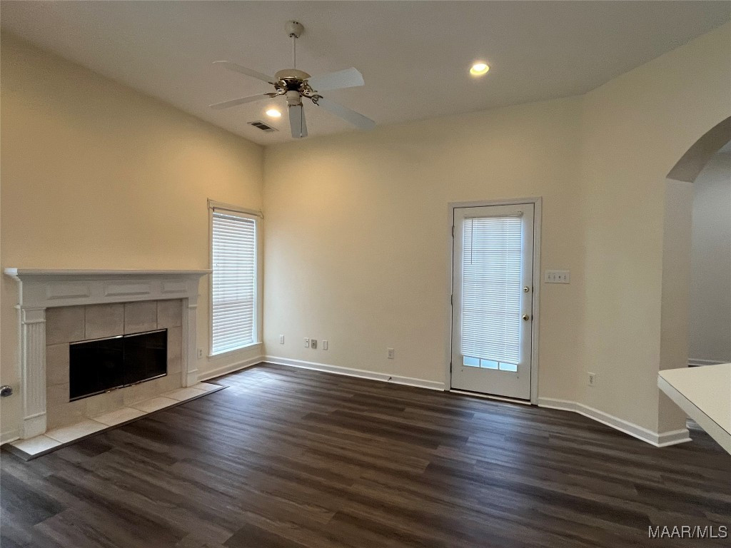 Wonderful 4-bedroom, 2-bath house with 2 living areas in Highland Ridge! It has a great room, family room, dining room, a well laid out kitchen with a dining area and a utility room. Fireplace in Family Room. Large Master Suite w/ Walk-in Closet. Master bath has new tile floor, garden tub, double sinks, & shower. Sunny breakfast area. Kitchen has new dishwasher and refrigerator, plenty of cabinet space & double-door pantry. Features include high ceilings, fireplace, refrigerator, dishwasher, disposal, stove, microwave, ceiling fans, patio and fenced yard. Tenants have access to neighborhood pool with fee.