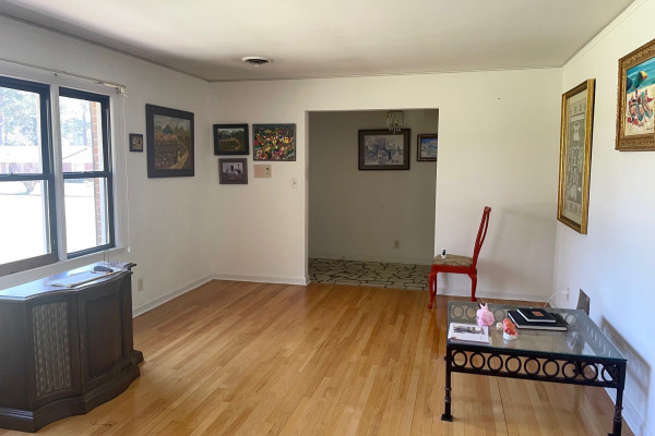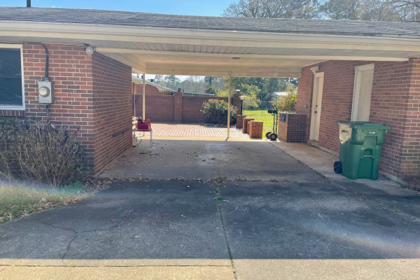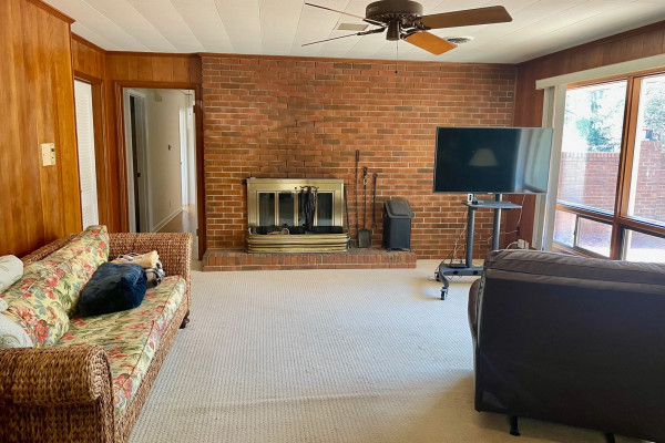 3 bedroom, 2 bath ranch style home. Very large open rooms. Kitchen opens up to a large den with fireplace with brick display and gas logs. Dining room opens up to a very large living room. Dining room has built in wall to wall floor cabinets with lots of storage. Outside you will find a brick wall private patio. Covered carport. Lots of extra storage area off the carport. Refrigerator, washer and dryer stays.