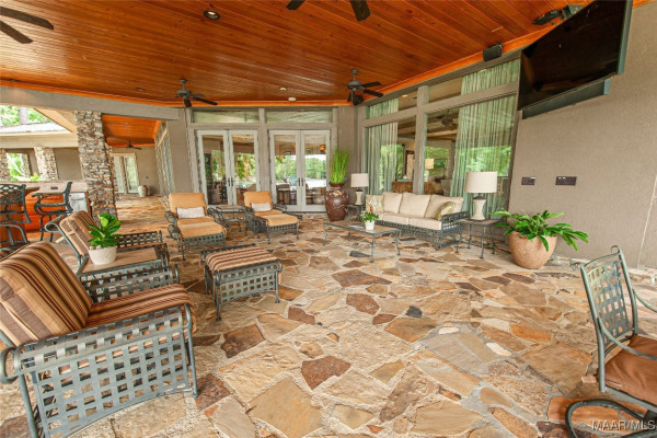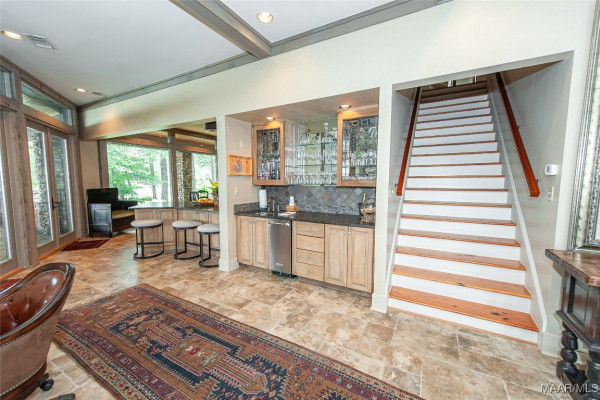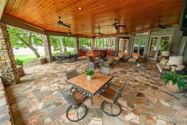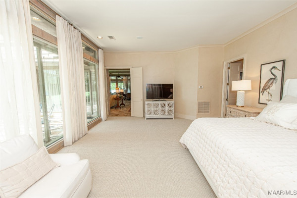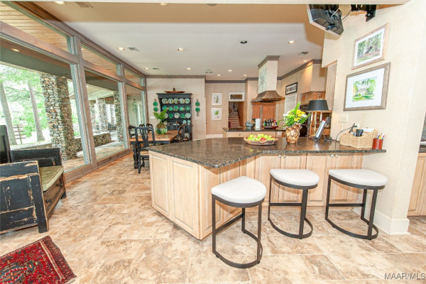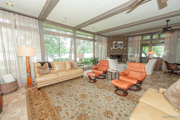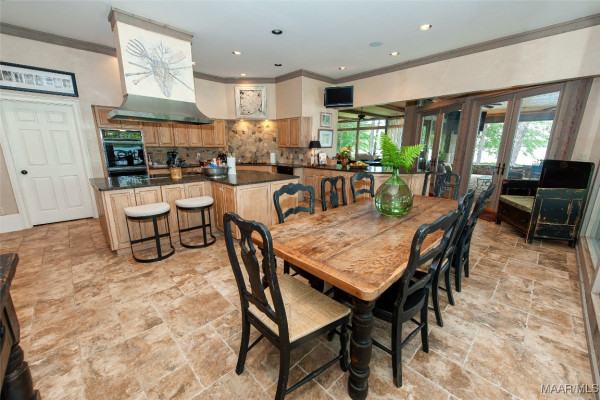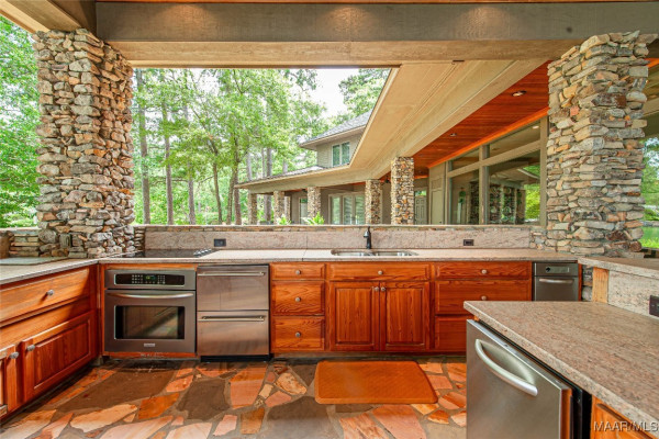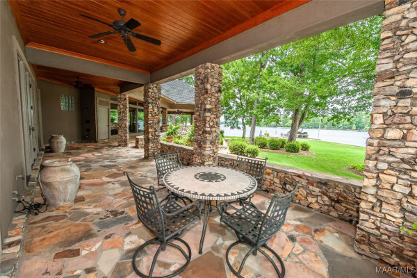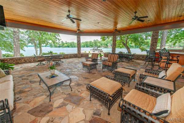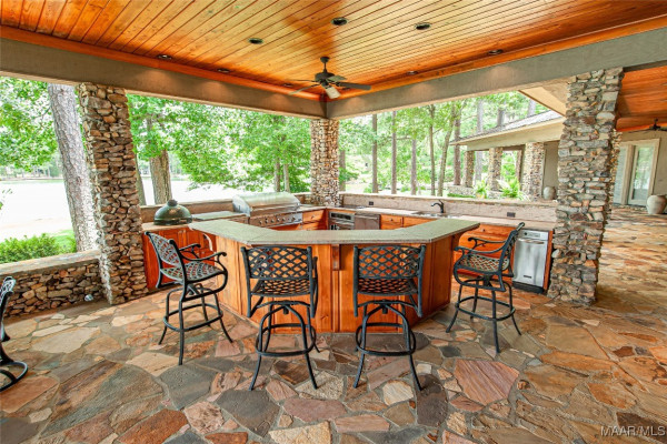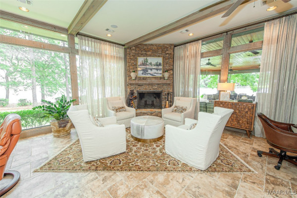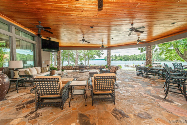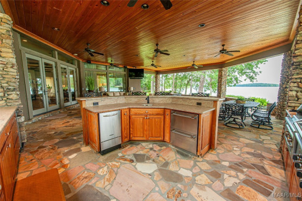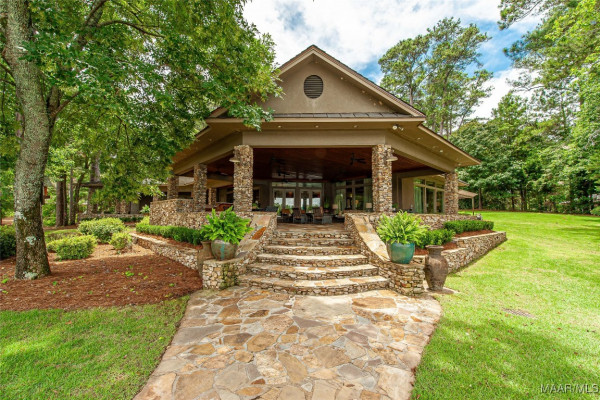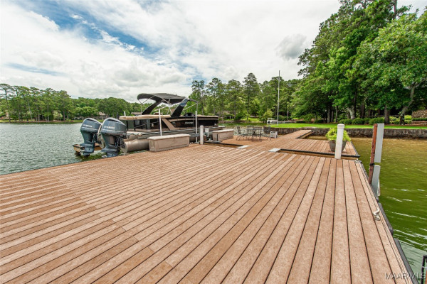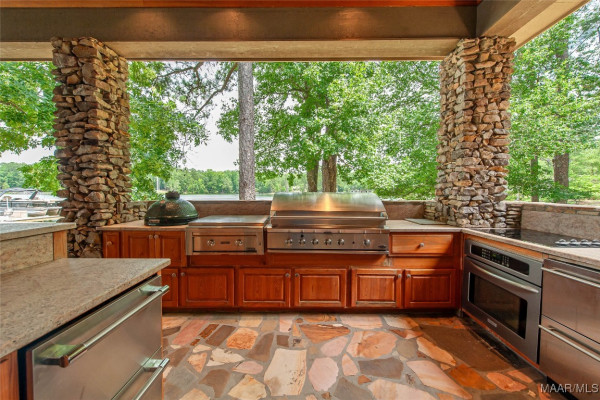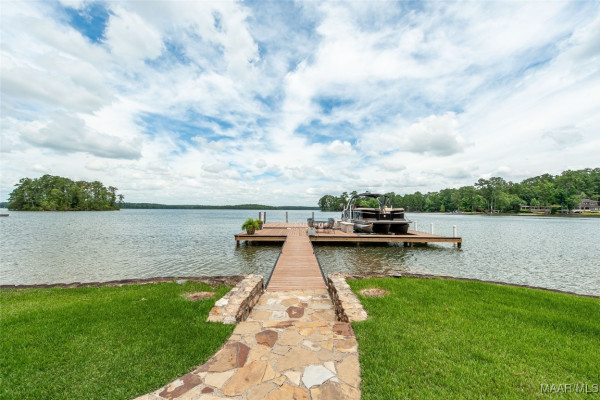 How Do You Describe Perfection? This home located in the Trillium neighborhood is IT! The magnificent floor plan was expanded and designed by architect Micki Jo’ell. Her creations are magnificently one of a kind. (See floor plans in the supplements.) This turnkey partially furnished two-story home has 7 bedrooms/5baths/2 half baths and features stunning views of the lake from every bedroom. The main floor offers the primary suite which has a large bath, and glass wall windows looking out to a private gazebo style patio. The spacious living area has a magnificent stone fireplace, wet bar and half bath. The huge open gourmet kitchen has custom cabinetry, work island, subzero refrigerator and breakfast bar – all of these areas have panoramic views of the water. There are 2 other bedrooms and a bath on the main floor. The second floor offers 4 large bedrooms, all with king size beds, 3 with their own private baths, and massive storage. NOW FOR THE ICING ON THE CAKE…..There is over 2600 square feet of outdoor living areas. The largest of these, which is approximately 2360 square feet, is where you will never want to leave!! It boasts a huge outdoor full kitchen with grills (a Green Egg, a searing grill and a large grill), ice maker, refrigerator drawers, cook top/oven, sinks and a seated island to watch the cook perform. Many other seating areas to enjoy, rest, play games or just have family fun. There is an outside shower and bath when you come in from the lake, and a sandy beach for the small kids to enjoy. The dock (built by Lake Martin Docks) has a boat lift, lots of sitting room and nice swimming area. It’s an absolute must to see the beauty and charm of this awesome property!
