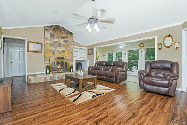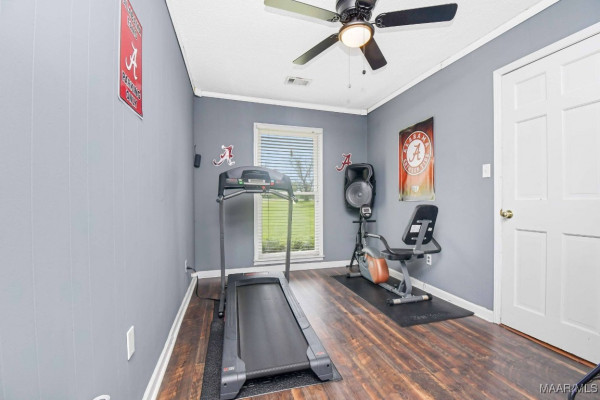 This brick home is a MUST SEE! Large greatroom with fireplace and built-ins provides a good flow to other parts of the home. One wall of the greatroom is windowed for a good view of the patio and backyard area. The kitchen is spacious with an eating area and attractive built-ins. Plenty of space in the pantry and other storage. Laundry room is off of kitchen. Master bedroom is large with master bath and huge walk-in closet. Master bedroom is down the hall from the kitchen and also opens onto the patio. The house has a split bedroom plan with master on kitchen side of house and 3 bedrooms and bath on the other side of the house. This plan provides a family with the opportunity to have a guest suite on one side of house and family living on the other side. This can allow young parents with small children to have a master bedroom close to the children while they are young. The double garage has vinyl on the trim and interior walls for easy maintenance. The garage has an automatic door and 2 storage rooms. There is a detached storage building on the property. Washer, Dryer, and gym set may stay with an acceptable offer!!