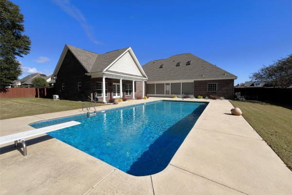Welcome to this spacious and beautifully updated home in the highly desirable Wynfield neighborhood of Prattville. Featuring a first-floor main suite with a generous sitting area, this home is designed for comfort and functionality. The main bathroom offers dual vanities, a relaxing jetted tub, and a separate shower. With three additional bedrooms on the main level, there’s space for everyone. The kitchen features granite countertops, an island and breakfast bar located next to the formal dining area. Upstairs, you will find a huge bonus room with a full bath, perfect for a guest suite, media room or private home office. The bonus room also includes dual stair access, one set connects to the main house and the other leads to the pool room. Step outside to your covered, enclosed porch that opens to a stunning inground saltwater pool. Adjacent to the pool is a dedicated pool room, featuring a kitchen area and a half bath, ideal for entertaining guests or enjoying a backyard staycation. Updates in the last two years include new architectural shingle roof, hardwood flooring, two new HVAC units, whole house generator, new privacy fence and new pool liner. This home offers space, luxury, and updates in one of Prattville’s most coveted neighborhoods.