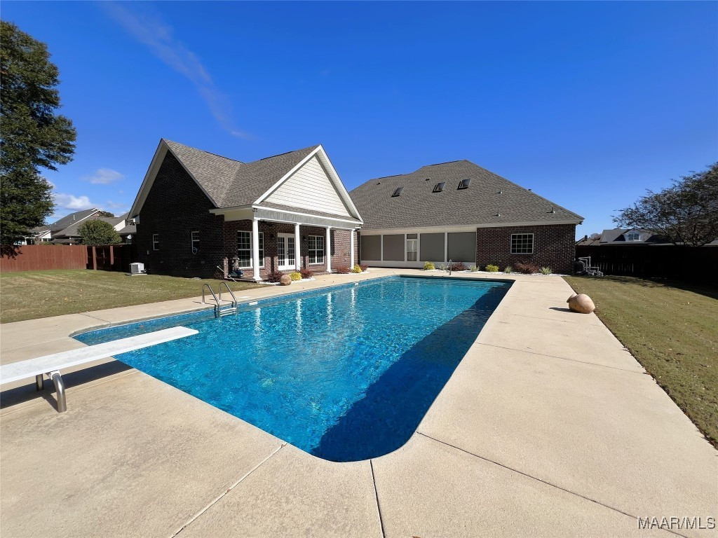 Welcome to this spacious and beautifully updated home in the highly desirable Wynfield neighborhood of Prattville. Featuring a first-floor main suite with a generous sitting area, this home is designed for comfort and functionality. The main bathroom offers dual vanities, a relaxing jetted tub, and a separate shower. With three additional bedrooms on the main level, there’s space for everyone. The kitchen features granite countertops, an island and breakfast bar located next to the formal dining area. Upstairs, you will find a huge bonus room with a full bath, perfect for a guest suite, media room or private home office. The bonus room also includes dual stair access, one set connects to the main house and the other leads to the pool room. Step outside to your covered, enclosed porch that opens to a stunning inground saltwater pool. Adjacent to the pool is a dedicated pool room, featuring a kitchen area and a half bath, ideal for entertaining guests or enjoying a backyard staycation. Updates in the last two years include new architectural shingle roof, hardwood flooring, two new HVAC units, whole house generator, new privacy fence and new pool liner. This home offers space, luxury, and updates in one of Prattville’s most coveted neighborhoods.