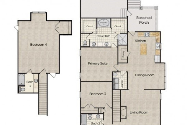 Welcome to 257 Northlake Street, featuring the Lakeside Bonus plan by Riverchase Homes. Perfectly positioned in The Waters, just steps from green space and tranquil lakeside views. Enjoy sunset Lake Cameron and gazebo views from the front porch.This thoughtfully designed home offers a functional and flexible layout with luxury vinyl plank flooring throughout the main living areas. The heart of the home is an open-concept kitchen, living, and dining space that makes everyday living and entertaining effortless. The kitchen includes a large island, abundant cabinetry, and a spacious pantry with wood shelving. The downstairs primary suite is a true retreat, showcasing an award-winning bath design with a soaking tub, separate shower, and two generous walk-in closets. Two additional bedrooms on the main floor share a full bath, offering comfort and convenience for family or guests. Upstairs, you’ll find a large bonus room or 4th bedroom complete with its own private full bath—ideal for a guest suite, media room, or home office. A covered back porch provides a great outdoor living space, and the attached 2-car garage adds ample storage and everyday functionality. Enjoy resort-style living year-round at The Waters in Pike Road. At The Waters, you’ll enjoy vacation at home every day with world-class fishing, lake boating, multiple lakes, swimming pools, tennis and pickleball courts, a lakeside beach, dog park, fire pits, playgrounds, a sports court, bocce ball, a soccer field, and miles of green space and trails. Plus, Town Center shops and dining are just steps away — or a short drive takes you to Pike Road Eastchase and Chantilly shopping districts. Located just 2.5 miles from I-85, Exit 16, and zoned for Pike Road Schools (K4–12th grade). Seller reserves the right to approve the buyer’s mortgage lender.