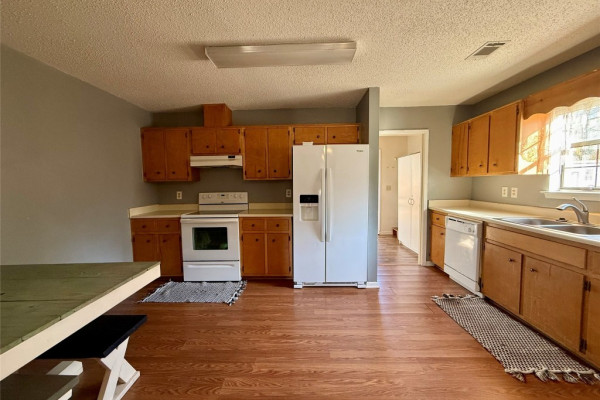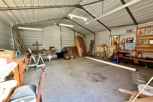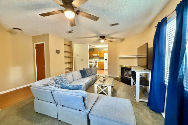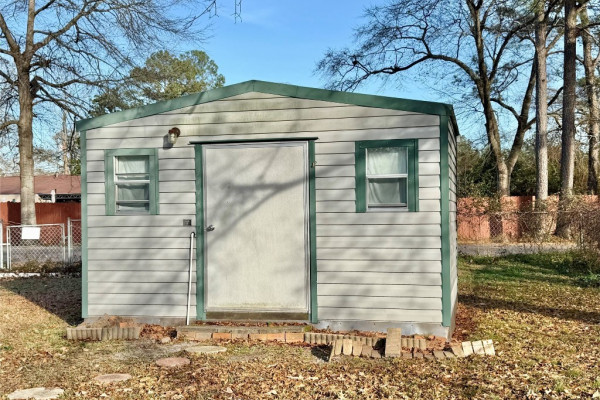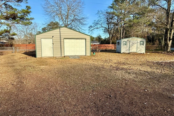 Step inside this delightful home and be welcomed by a charming foyer that opens into a warm and inviting den, highlighted by a cozy fireplace and built-in bookshelves—perfect for displaying books, photos, and treasured décor. The light-filled kitchen offers a comfortable space for gathering and everyday living. This home features three comfortable bedrooms, two full bathrooms, and a bright, functional laundry room. Enjoy relaxing on the nice front porch or entertaining in the large fenced backyard, offering plenty of space for pets, play, or outdoor gatherings. Outside, you’ll also find a spacious detached garage/workshop that is wired and includes shelving, ideal for hobbies, projects, or a woodshop, along with an additional smaller wired hobby or storage building, formerly used as a she-shed. Nestled near the end of a quiet cul-de-sac, this property also boasts a brand-new roof and is conveniently located near restaurants and shopping, while still providing the peaceful feel of country living.
