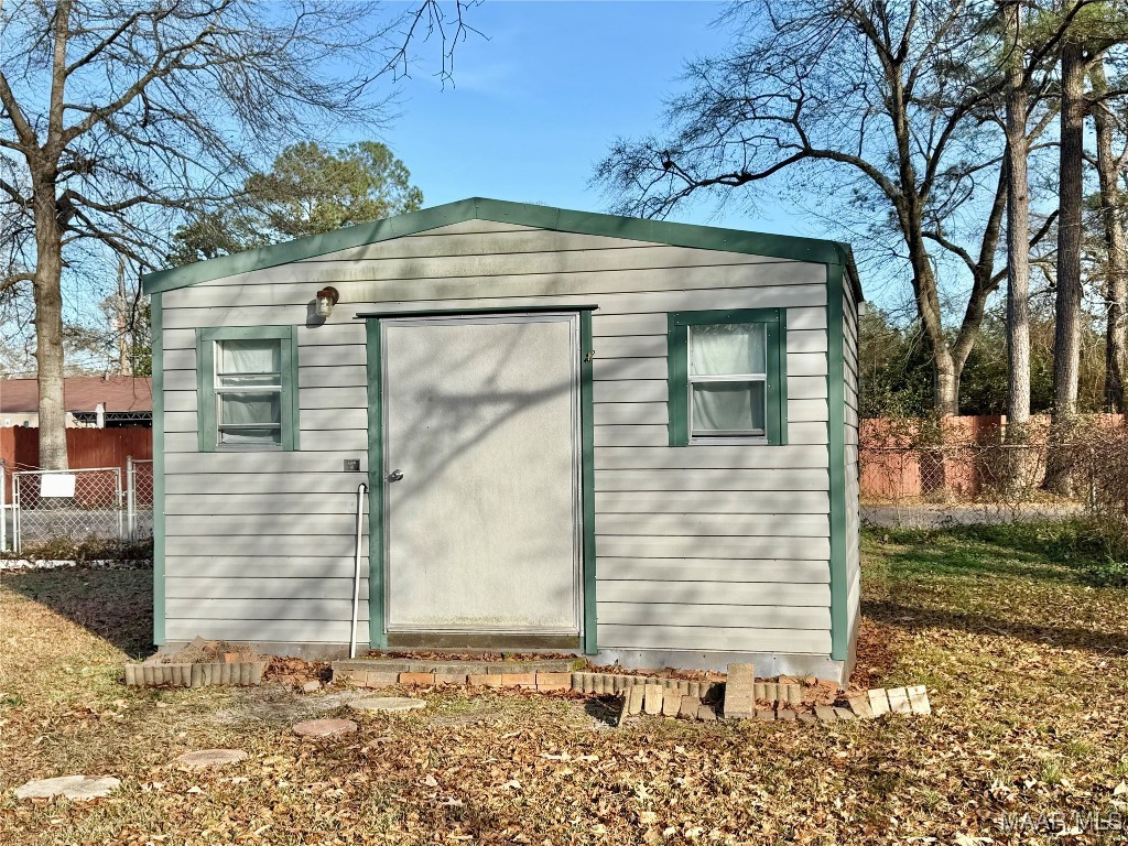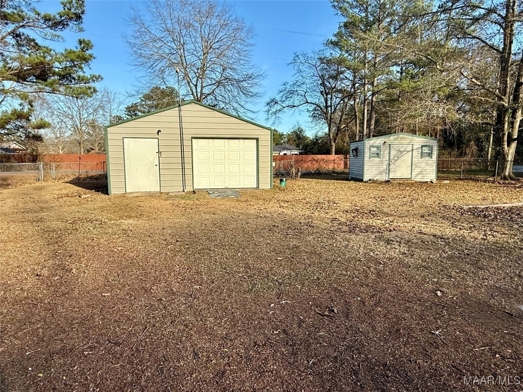 Step inside this delightful home and be welcomed by a charming foyer that opens into a warm and inviting den, highlighted by a cozy fireplace and built-in bookshelves—perfect for displaying books, photos, and treasured décor. The light-filled kitchen offers a comfortable space for gathering and everyday living. This home features three comfortable bedrooms, two full bathrooms, and a bright, functional laundry room. Enjoy relaxing on the nice front porch or entertaining in the large fenced backyard, offering plenty of space for pets, play, or outdoor gatherings. Outside, you’ll also find a spacious detached garage/workshop that is wired and includes shelving, ideal for hobbies, projects, or a woodshop, along with an additional smaller wired hobby or storage building, formerly used as a she-shed. Nestled near the end of a quiet cul-de-sac, this property also boasts a brand-new roof and is conveniently located near restaurants and shopping, while still providing the peaceful feel of country living.