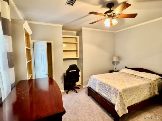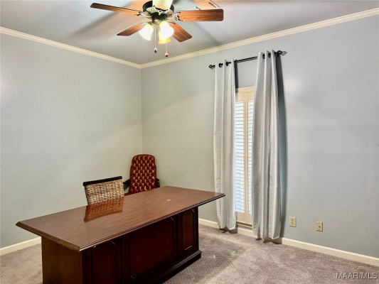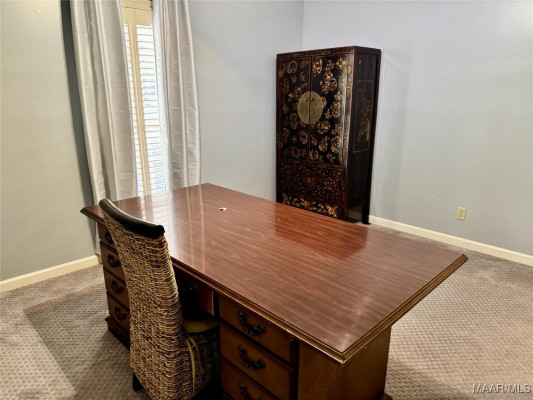The spacious layout includes newly renovated bathrooms, a large eat-in kitchen with an oversized island and quality finishes, and a private office that can also serve as a fifth bedroom with a full closet. The primary suite offers a cozy sitting area, two large walk-in closets, and a stunning bathroom with double vanities and a built-in dressing table. Enjoy the inviting family room with a gas fireplace and built-in bookcases, along with a generous private backyard—perfect for relaxing or entertaining. Additional features include a two-car carport with excellent storage space. Conveniently located near shopping, dining, and just 15 minutes from Maxwell Air Force Base. Pet Friendly. For more information or to schedule a showing, call or text Cynthia Faurote, Realtor® at 334-318-5168.