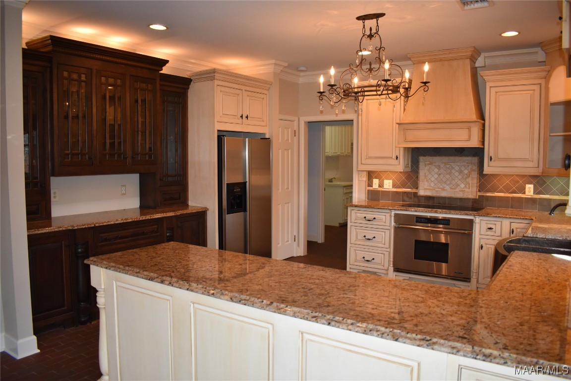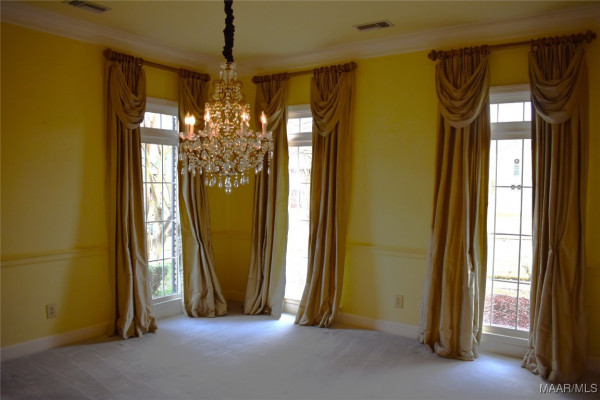 Timeless, custom, classic! This Vaughn Meadows estate home exemplifies those adjectives perfectly. Designed by local renowned architect Harold Nichols, attention was made to every detail, from volume ceilings, elegant formal spaces, large open family spaces, and a dream kitchen with all the bells and whistles. Foyer welcomes you into the bright living and dining rooms with handmade silk draperies and plenty of windows for natural light. Large brick-floored breakfast room with sunny bay windows looks into an updated chef’s delight kitchen with loads of counter space, cabinets, and built-in display cupboards. High-end appliances, under AND over counter lighting show that no expense was spared. Off the kitchen is an elegant powder room, spacious laundry/mudroom, and a bonus/craft room. Great room features gas log fireplace, built-in bookshelves, and opens to large sunroom with skylights for more natural light. Also on main floor is study/office with more built-in bookshelves. Primary suite is large enough for king-sized furniture and seating area, and primary bath has split design with separate vanity areas, garden tub, separate walk-in shower, and water closet. Primary suite boasts 5 closets, one custom walk-in! Second floor has one bedroom with private bath, and two other large bedrooms with shared bath. 2-car garage has plenty of storage and separate storage/workshop room. Out back is a fully fenced yard with mature landscaping, large patio, and lots of privacy.