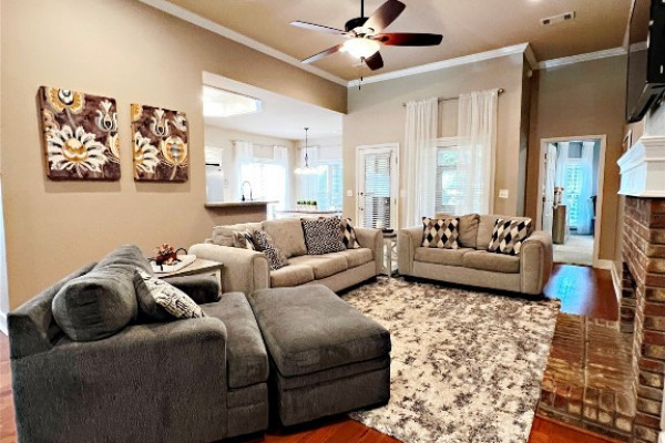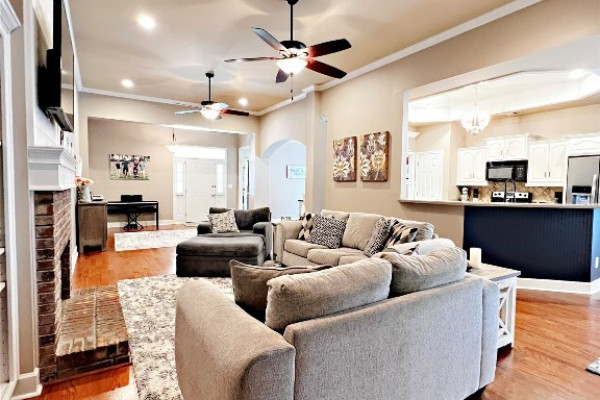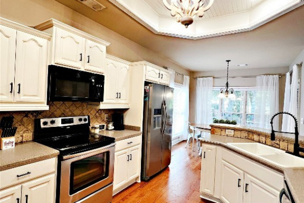 Located on a private golf course lot with a pond in the back. Open plan with lots of trim details. Architectural roof installed November 2022. Kitchen and master bath updated in 2017 (dishwasher 1yrs old). HVAC and water heater replaced in the past 7 years. Large great room with built in’s and gas log fireplace with brick facing and shiplap above. Office or playroom located off the entry foyer. Separate dining room and breakfast room. Massive master suite is separate from the other two bedrooms. Master bath has separate tiled shower, garden tub, double vanities with knee space, water closet and walk in closet. Laundry room with built in ironing board and sink. Double car garage with new garage motor. Covered and screened back porch. Deck off the back porch for grilling. Iron gate and access to the pond. Zoned for the desirable Redland School System.
