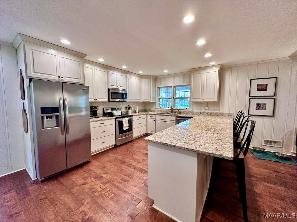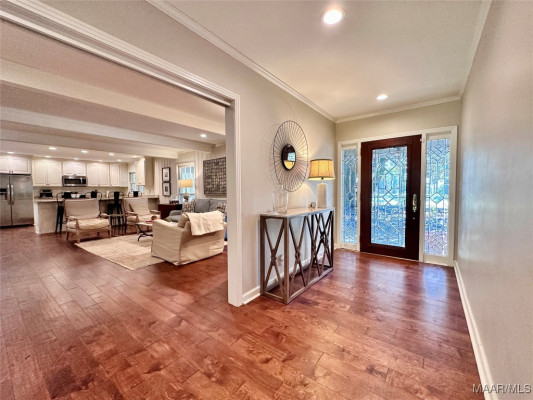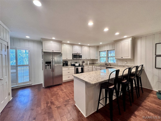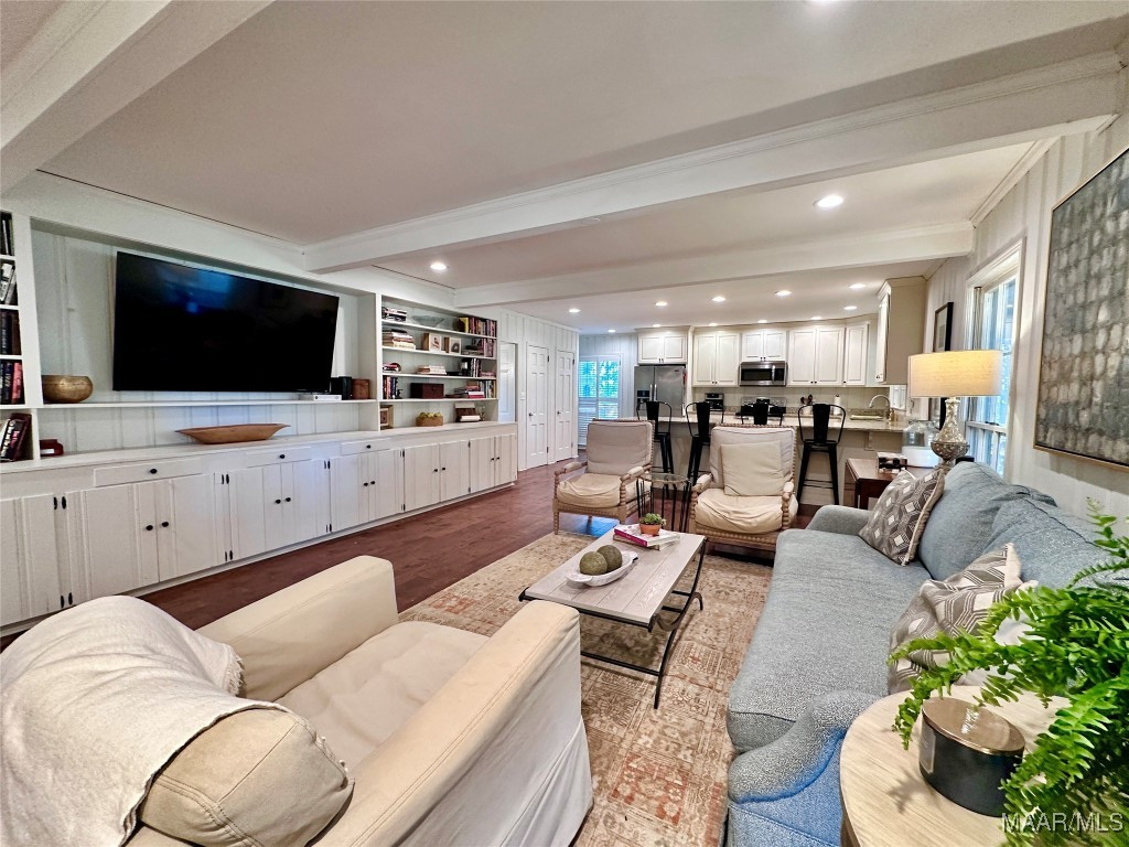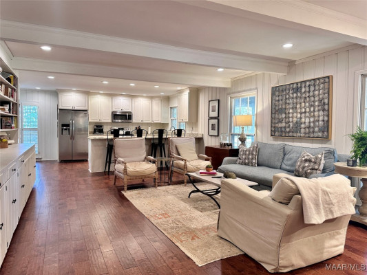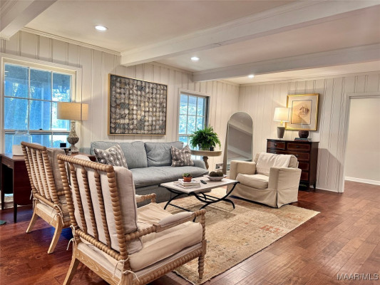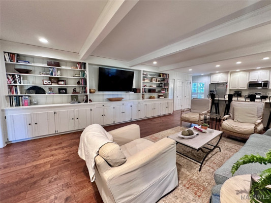 Inside, the open-concept kitchen and great room are truly the heart of the home, featuring granite countertops, custom cabinetry, wood flooring, exposed beams, and a wall of built-ins that add warmth and function. A formal dining room and separate sitting area make entertaining easy, while the spacious bedrooms and updated bathrooms offer style and practicality.