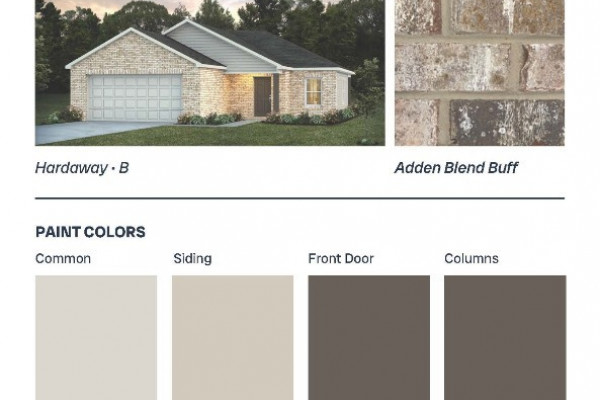 Special incentives available! Please ask for details. The Hardaway floorplan welcomes you with comfort and privacy in this charming one-story design. The open-concept layout features a great room, dining area, and kitchen with a large island and pantry overlooking the dining space—ideal for both everyday living and entertaining. The private primary retreat offers a tub/shower combination and a spacious walk-in closet. Additional bedrooms and a shared bathroom are thoughtfully positioned at the rear of the home for privacy. The laundry room connects conveniently to the two-car garage, providing an efficient mudroom area. Enjoy relaxing on the covered porch, perfect for cool spring nights and crisp fall evenings.