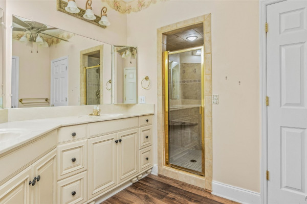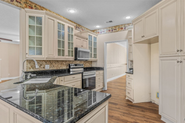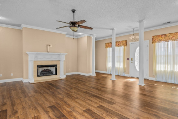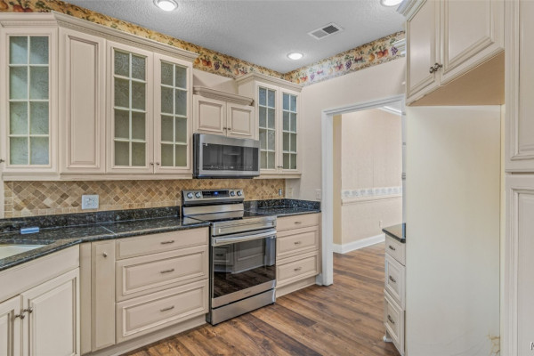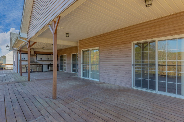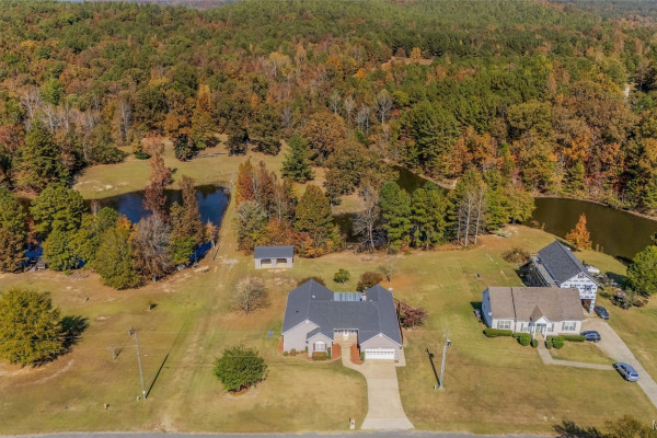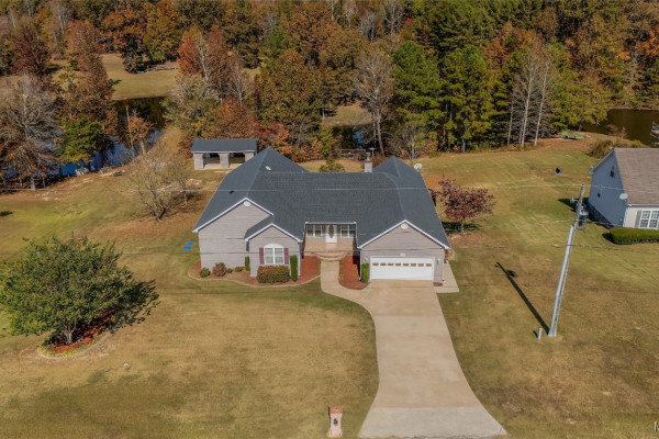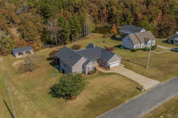 Stunning home in Ashville’s Southern Lakes Estates! This one owner, custom built home is situated on a large lot with access to a pond at the backside of the property. There is also a large pavilion situated to one side of the lot at the rear. Pride of ownership is evident from the time that you pull into the driveway. Concrete curbing lines the landscaping that is meticulously manicured. Walk into an open and inviting living space with a cozy fireplace situated to one side. There are double slider doors overlooking the oversized deck which is perfect for entertaining! The deck, which overlooks the pond at the back of the property, features ample space for tables, chairs and gatherings while offering an outdoor kitchen on one side lends itself for entertaining guests. The kitchen and dining area are both situated just off of the living space. The dining area is spacious enough to host numerous guests and the kitchen offers beautiful quartz countertops, ample cabinet space and a breakfast nook that overlooks the backyard and pond while enjoying coffee in the mornings. The home offers a split plan with the primary suie situated to one side and the guest bedrooms and bathroom on the other. The primary suite is large enough to accommodate a king set and has access to the back deck, while the attached bath offers 2 custom closets, a double vanity and a large shower. Down the hall you have the garage access which offers plenty of storage space as well as custom tile flooring. Downstairs you will find even more space for guests. There is a 1 bay attached workshop, 2 living spaces, a half bath, 2 storm shelter rooms AND a kitchenette! This home has to be seen in person to be truly appreciated! Don’t miss this one! Call for your private showing today!