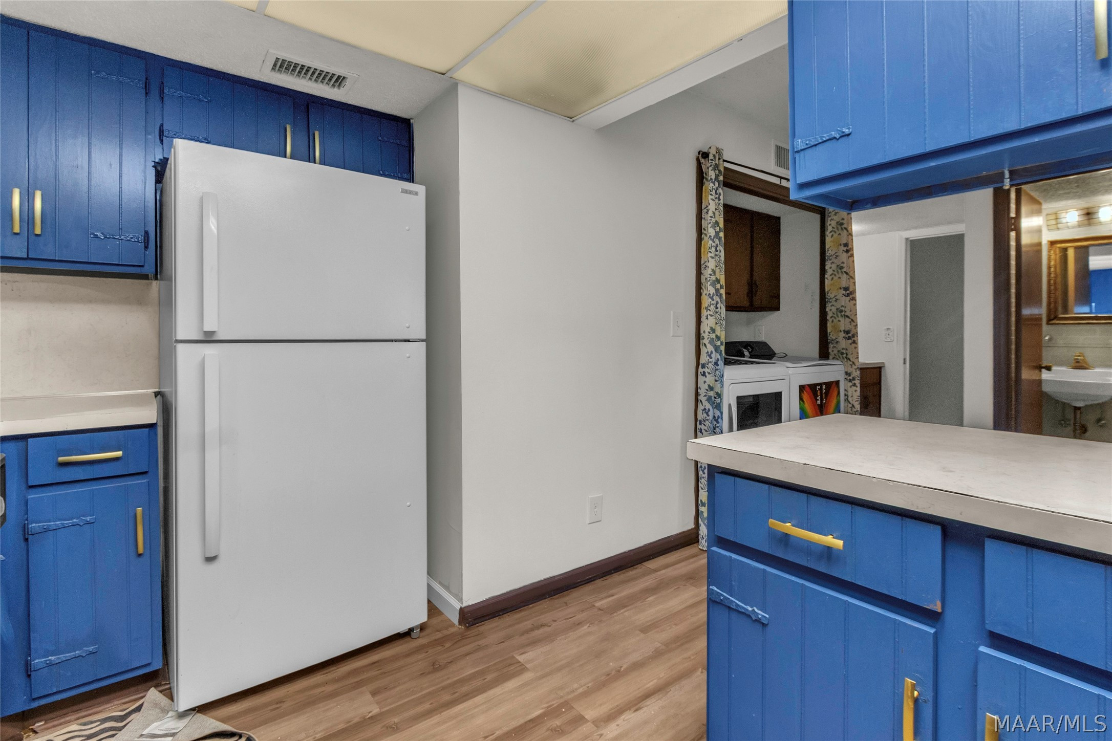 Charming 3-bedroom, 2.5-bath home offering comfort and functionality in a peaceful setting. The exterior features a welcoming façade with a spacious driveway and covered parking. Inside, the home includes a cozy living area highlighted by a striking stone fireplace and durable flooring, perfect for everyday living or entertaining. The kitchen showcases bold blue cabinetry, ample counter space, and modern appliances, providing a functional and inviting cooking space. Bathrooms are well-appointed with double vanities and clean, updated finishes. Natural light flows throughout the home, enhancing the bright and open feel. With generous living spaces, practical layout, and inviting outdoor surroundings, this property is ideal for homeowners seeking comfort, character, and convenience.