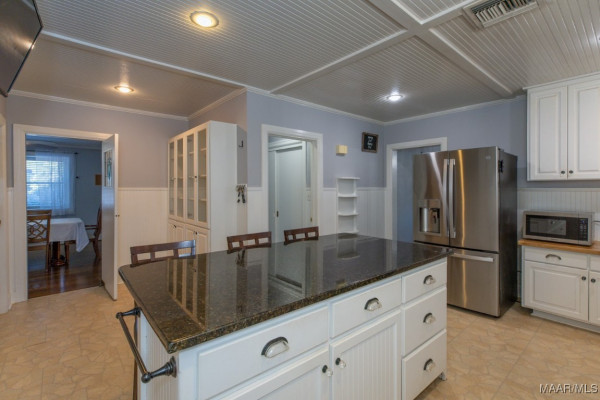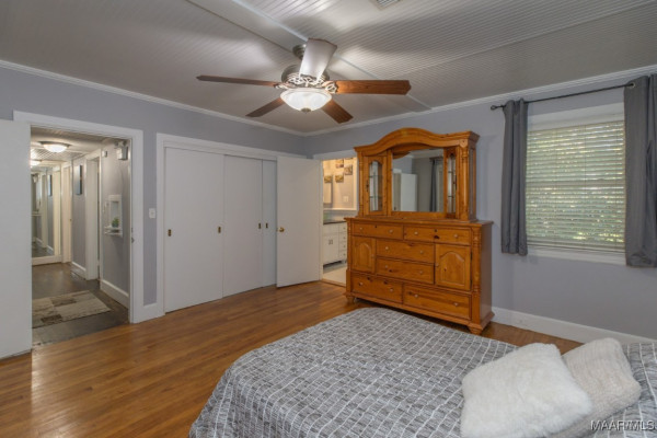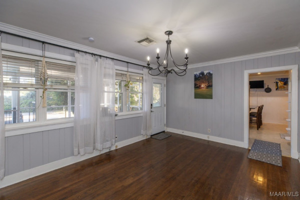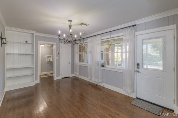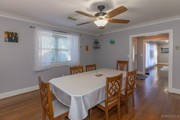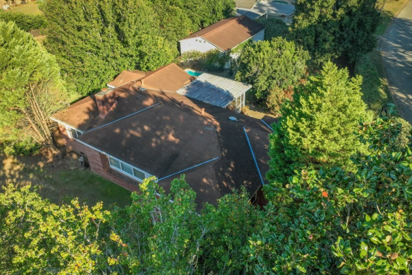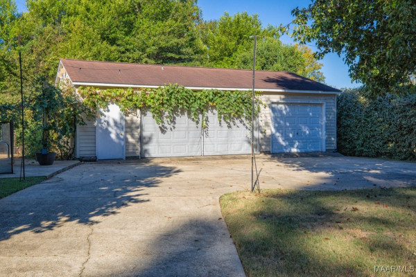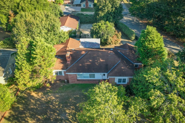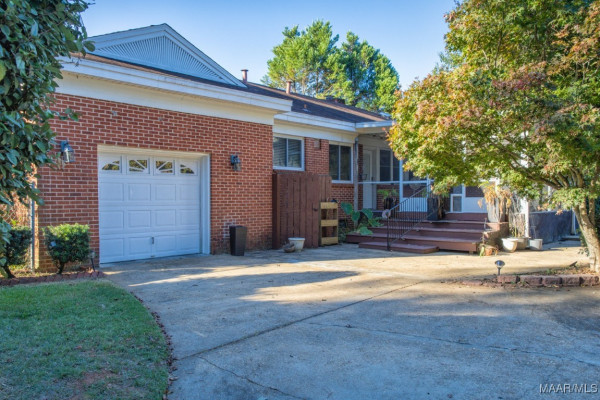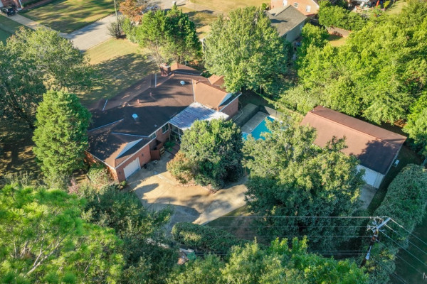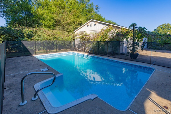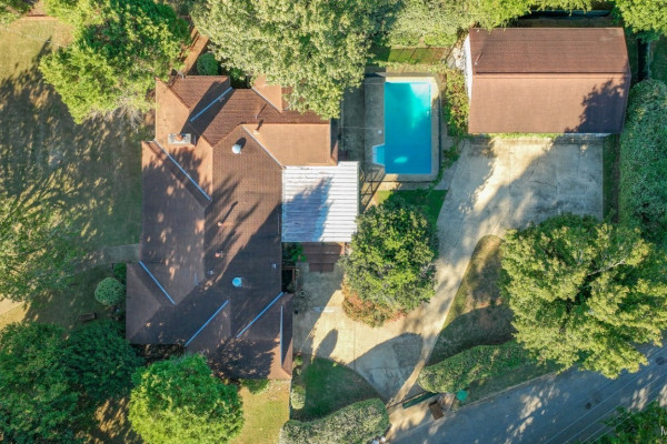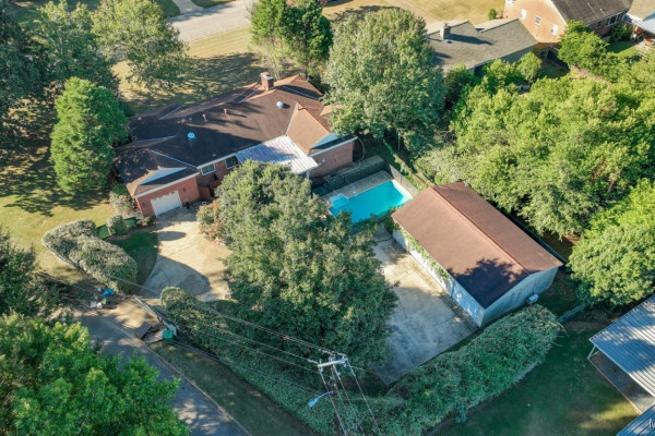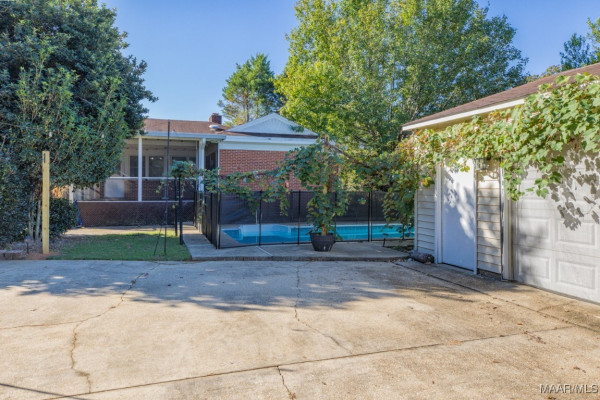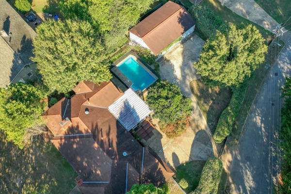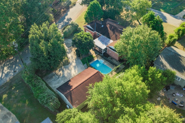 Welcome to this beautiful home filled with character, modern updates, and a sparkling pool. Situated on a large corner lot with a gated driveway for privacy. This home features original hardwood floors throughout. A spacious living room with picture windows that flood the space with natural light. Enjoy cozy evenings by the marble fireplace with gas logs. The kitchen is a cook’s dream, offering stainless steel appliances, including a gas range with center griddle, butcher block, and dark granite countertops, a center island, breakfast bar, and charming built-ins with glass doors. A stunning stained-glass swing door leads to the formal dining room. The primary suite features an extra-large closet and a private modern bath with a glass bowl sink and a tiled walk-in shower. The front guest bedroom has built-ins with interior lighting and a center desk area, ideal for work or study. The third bedroom or flex space offers versatility for your lifestyle. A full hall bath serves secondary bedrooms. Step outside to a screened patio overlooking the pool. Enjoy a splash in the pool. The pool area is separately fenced for safety and peace of mind. Pool liner is 1 yr old. An attached single-car rear entry garage that includes a washer/dryer hookup and storage. The detached 3-car garage includes a half bath for swimmers and plenty of room for vehicles, storage, or projects. The backyard is fully fenced and has a gated entry for private parking and security.
